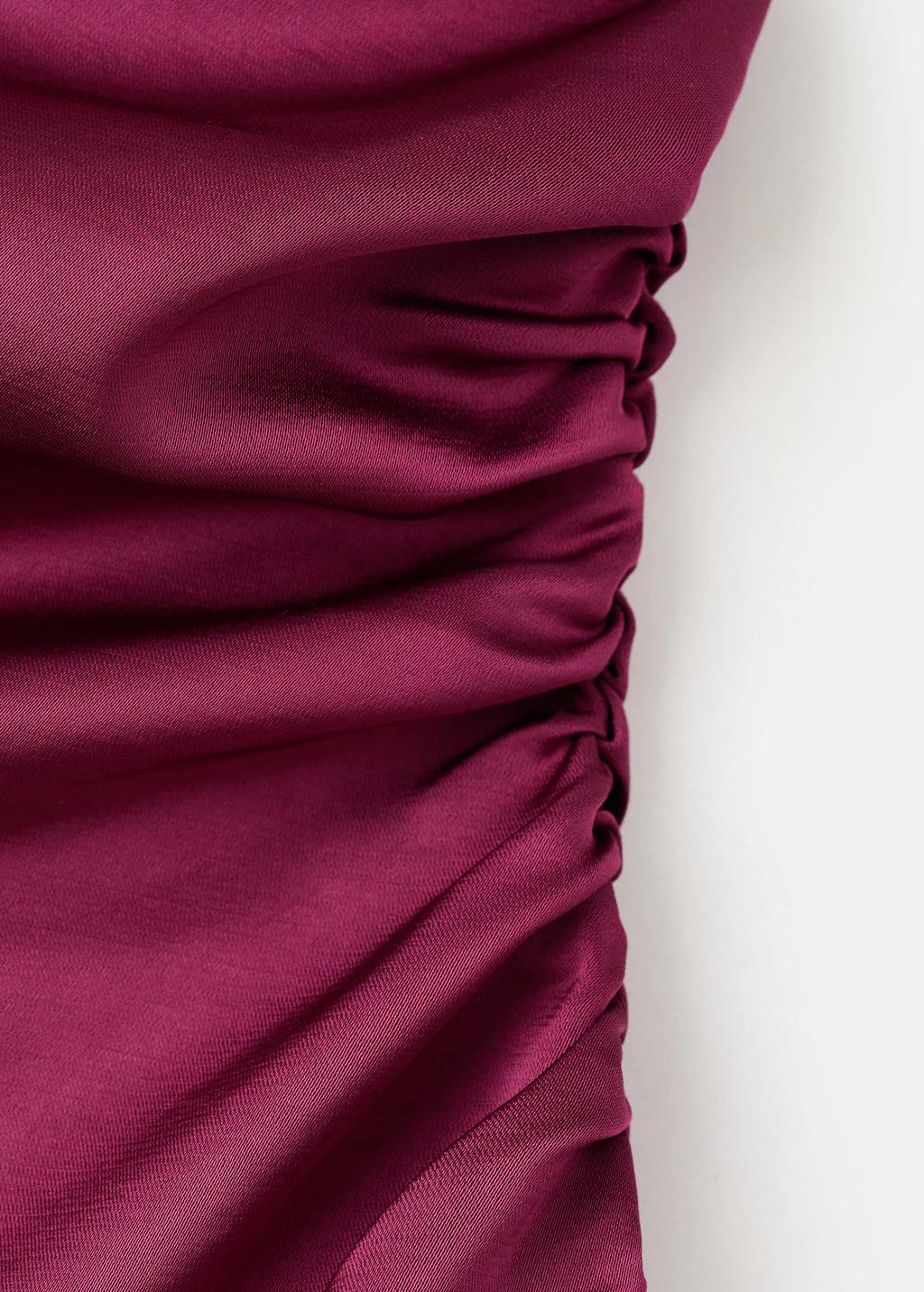 Tejido satinado. Diseño midi. Diseño entallado. Cuello asimétrico. Sin mangas. Fruncido lateral. Abertura latera en el bajo. Cierre de cremallera lateral. Exclusivo Online. Esta prenda pertenece a nuestra colección de evento, diseñada para convertirte en la invitada perfecta en cualquier fiesta, boda o ceremonia