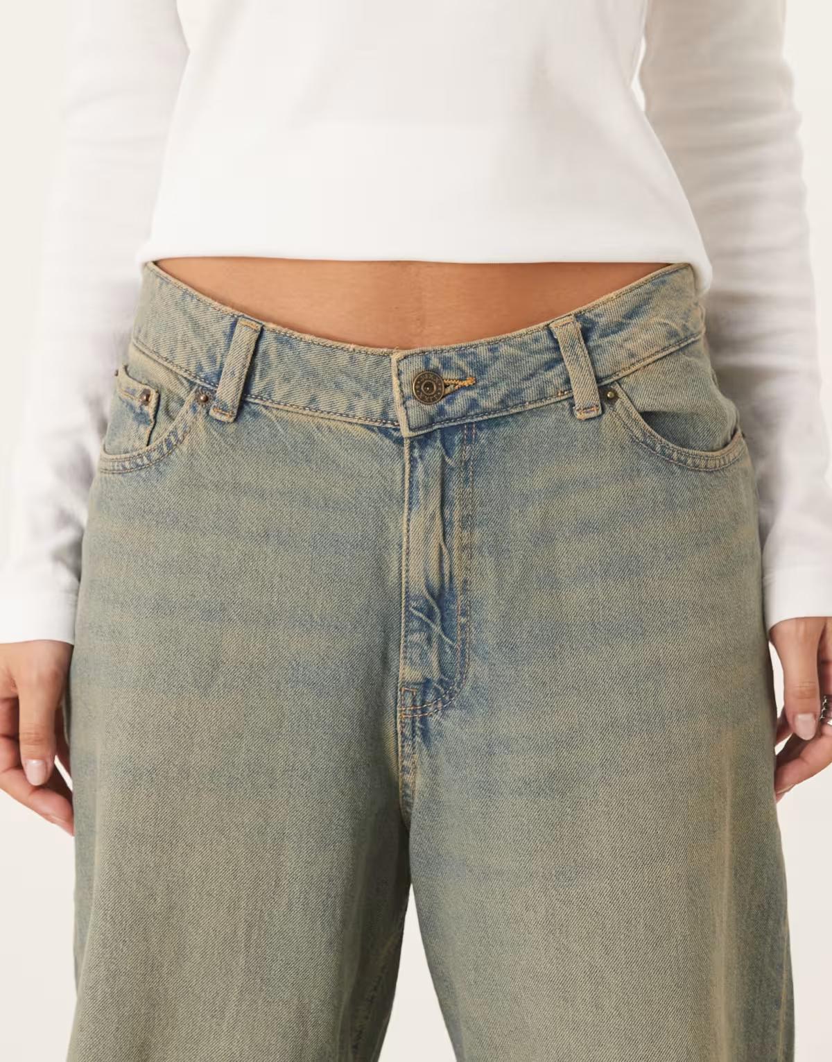Machine wash according to instructions on care labelNon-stretch denim: mid-blue wash