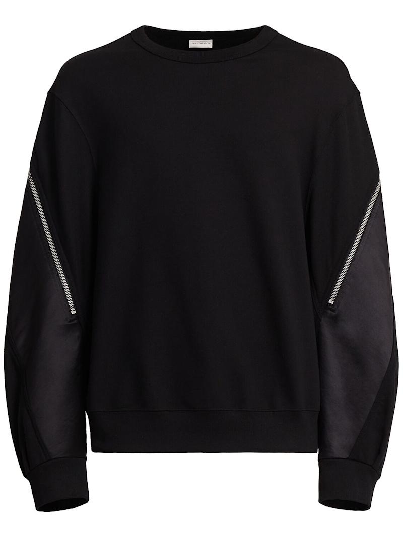 Hando棉质针织&科技织物卫衣 - 黑色 - 男士 - Dries Van Noten - 罗纹边缘