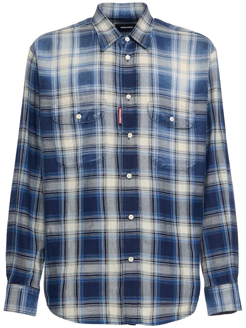 Canadian Vintage格纹衬衫 - Indigo Check - 男士 - Dsquared2 - 正面纽扣开合.