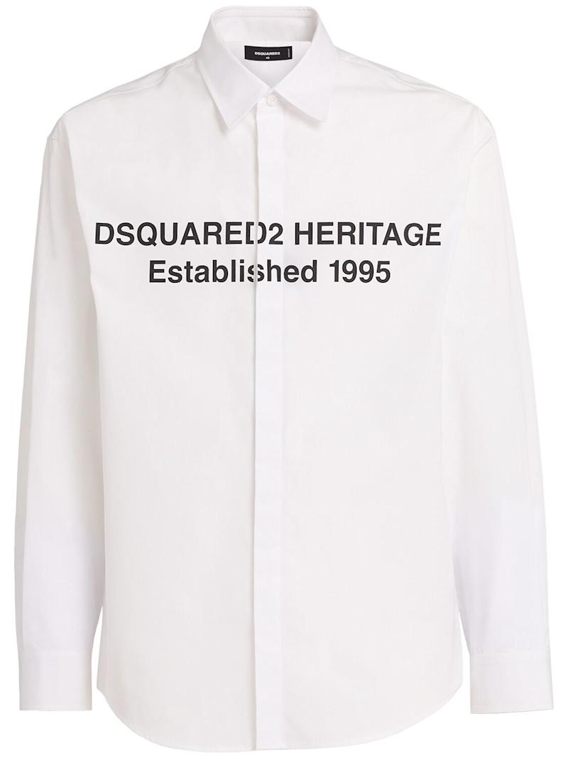 Heritage logo印花衬衫 - 白色 - 男士 - Dsquared2 - 正面纽扣开合.