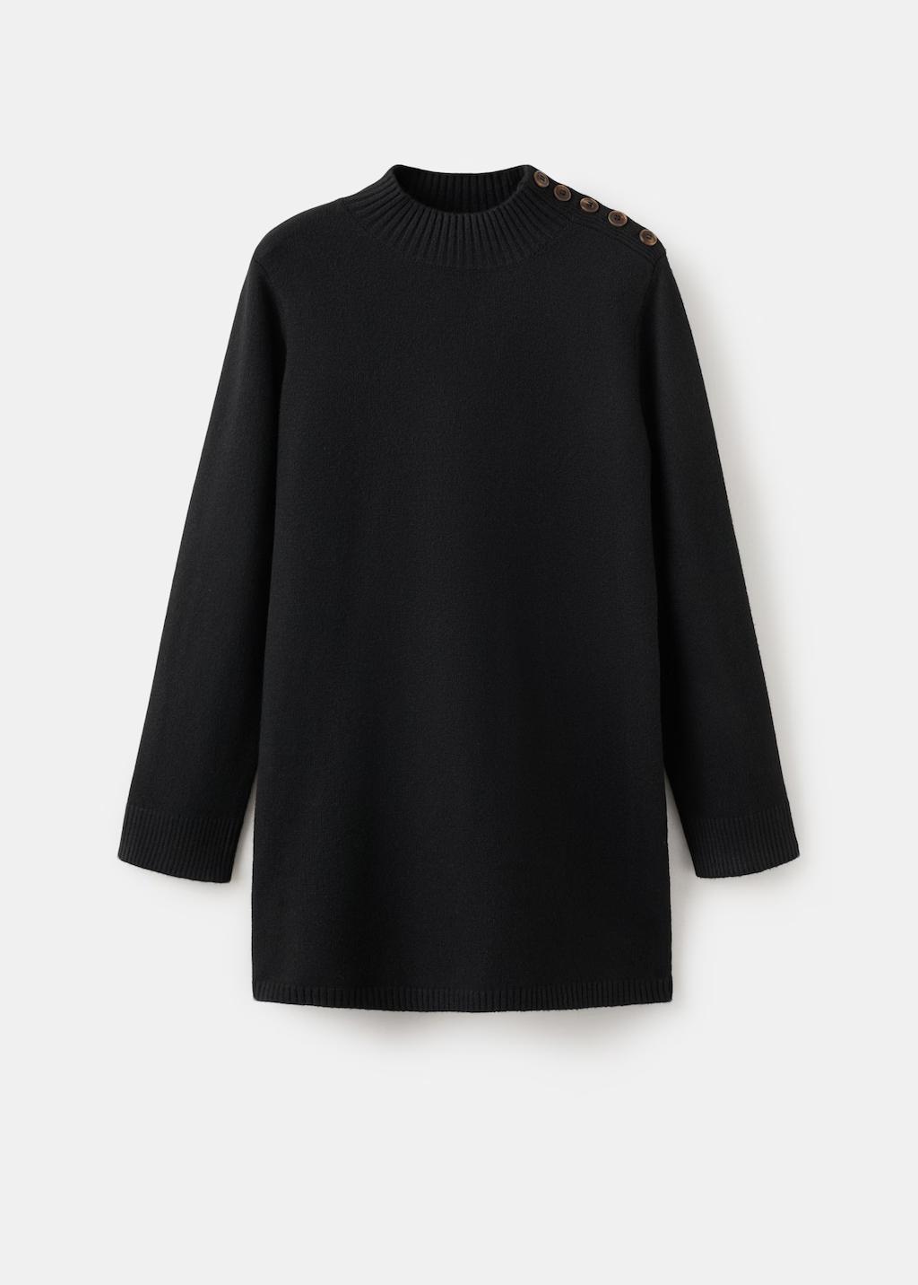 Tejido de punto. Diseño corto. Cuello perkins. Manga larga. Detalle de botones en el hombro
