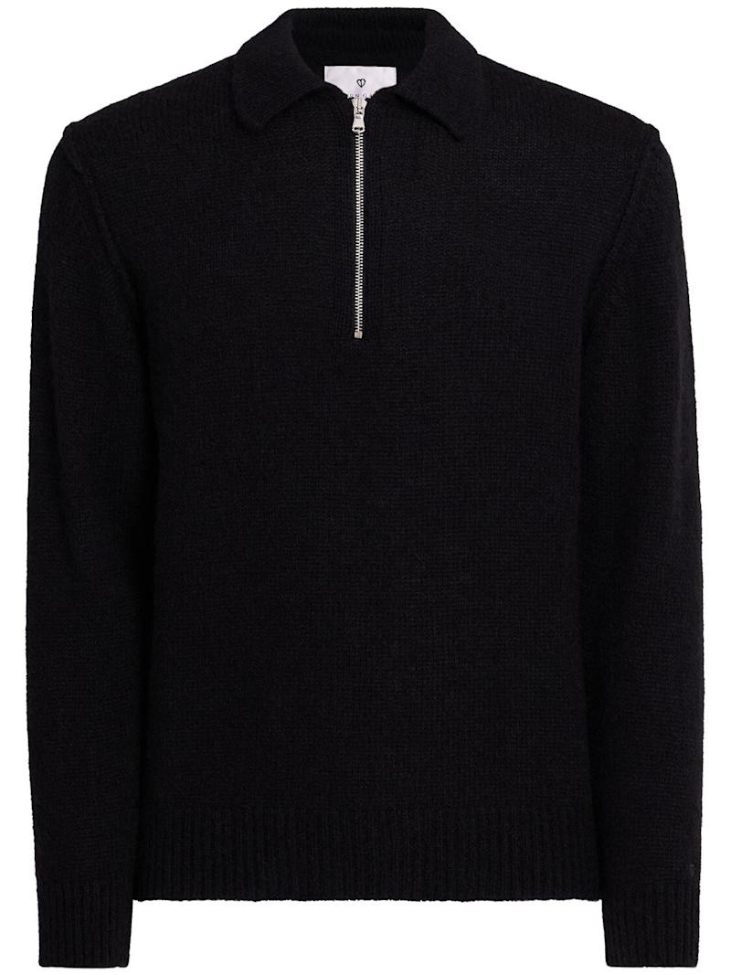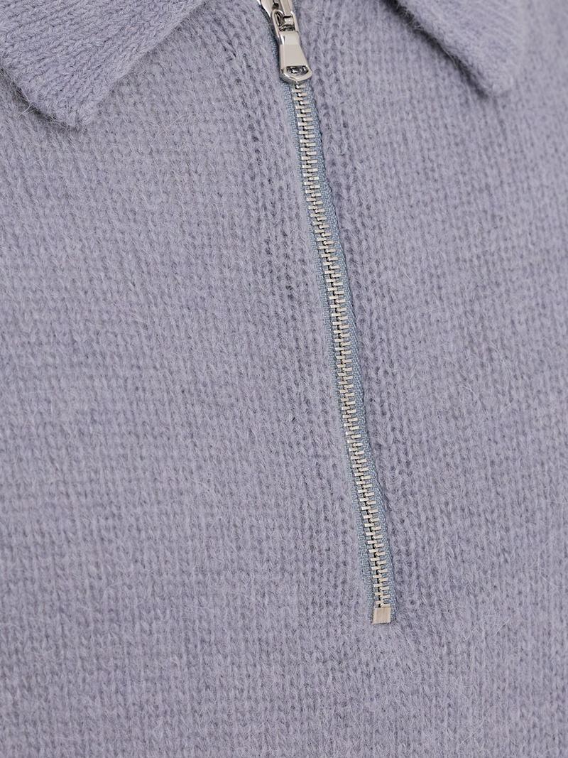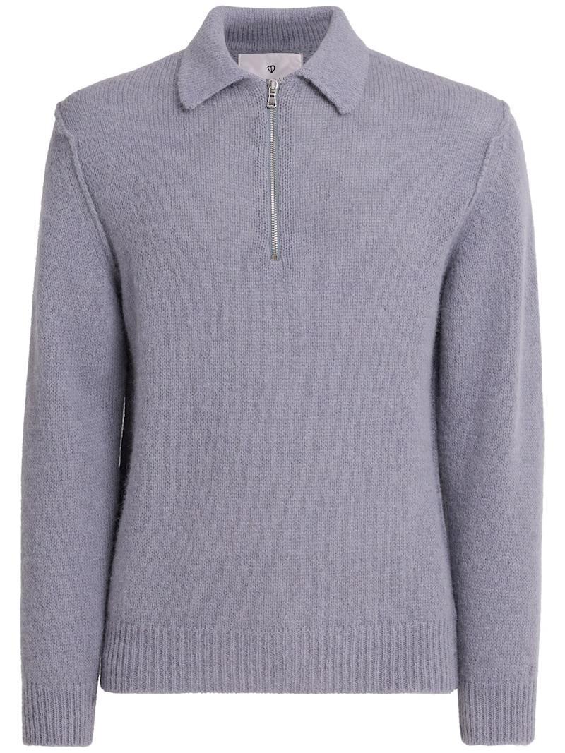羊驼毛混纺针织POLO衫 - 灰色 - 男士 - Seven Gauge - 正面半长开襟开合.