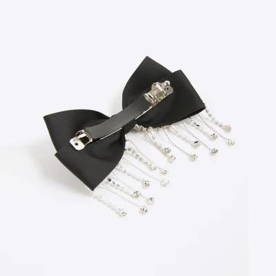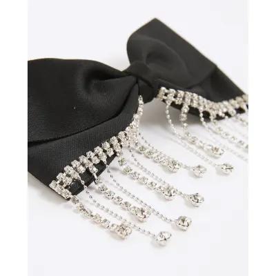 Black Diamante Drop Bow Hair Clip