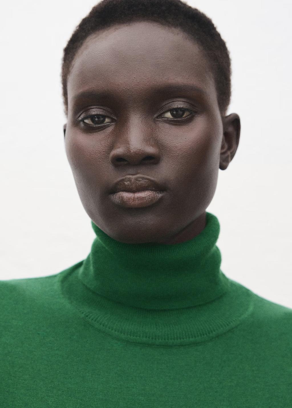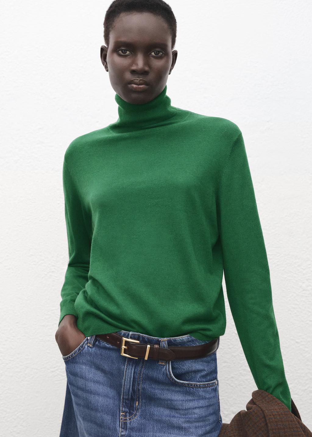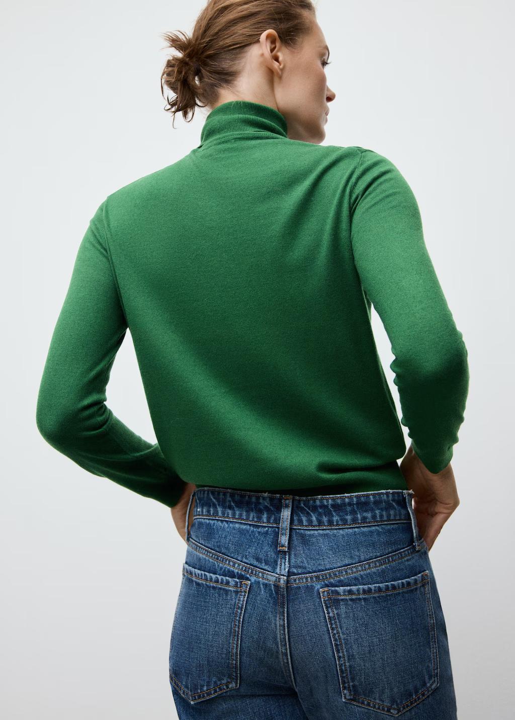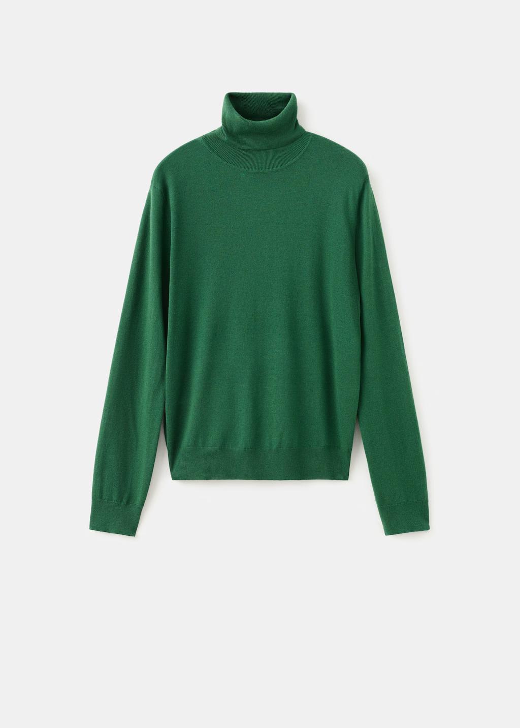 Tejido de punto fino. Diseño recto. Cuello vuelto. Manga larga. Sin cierre