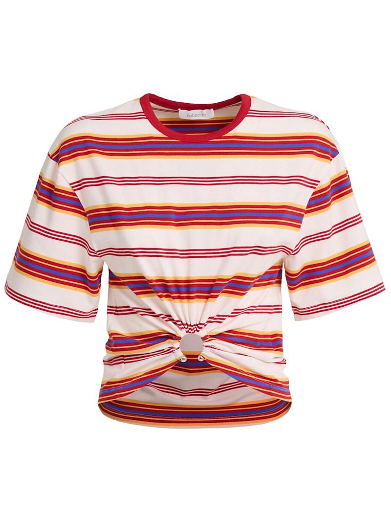 条纹平纹针织T恤 - 白色/多色 - 女士 - Rabanne - 圆领设计.