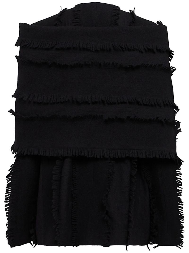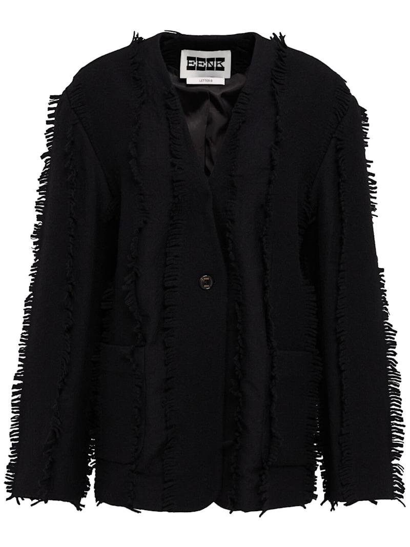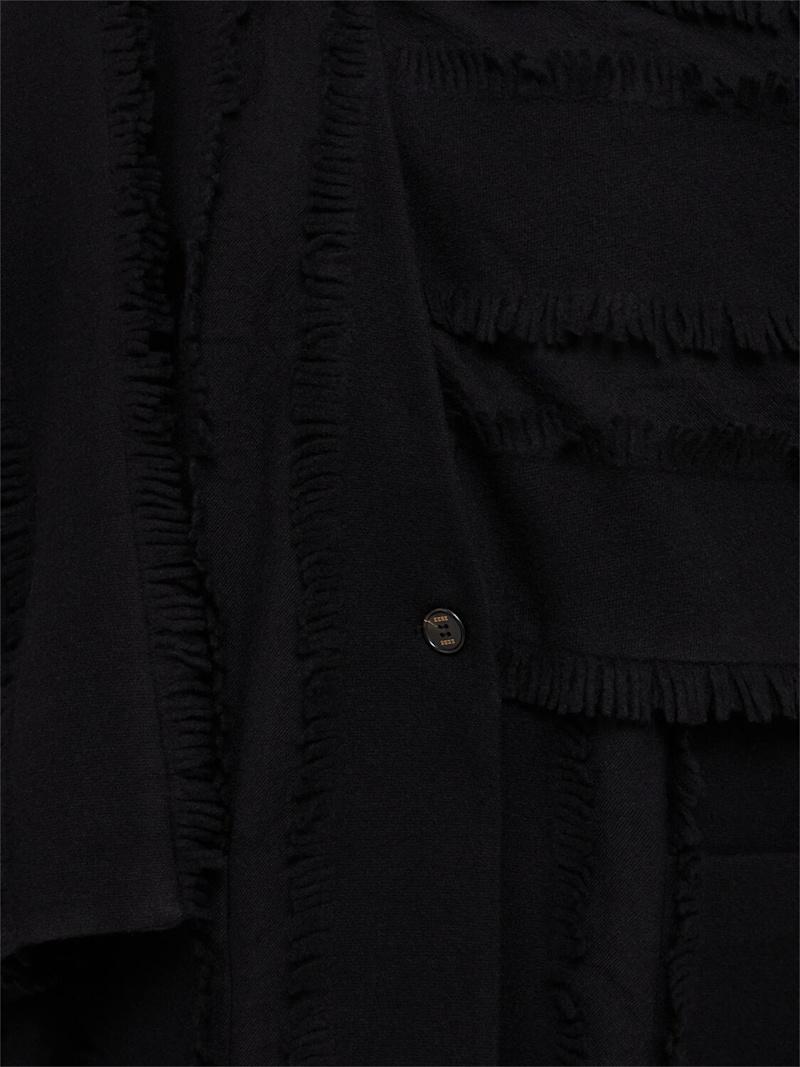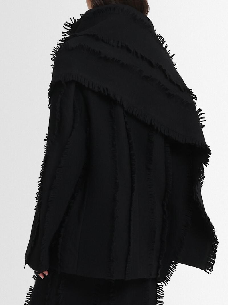 围巾细节纹理羊毛夹克 - 黑色 - 女士 - Eenk - 正面纽扣开合.