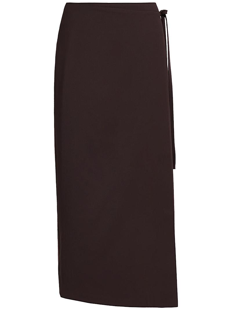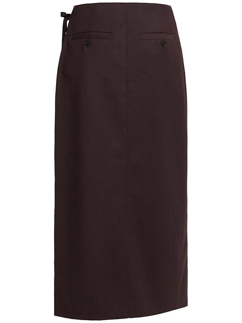 羊毛混纺迷笛裹身半身裙 - 棕色 - 女士 - Tonywack - 侧边系带开合.