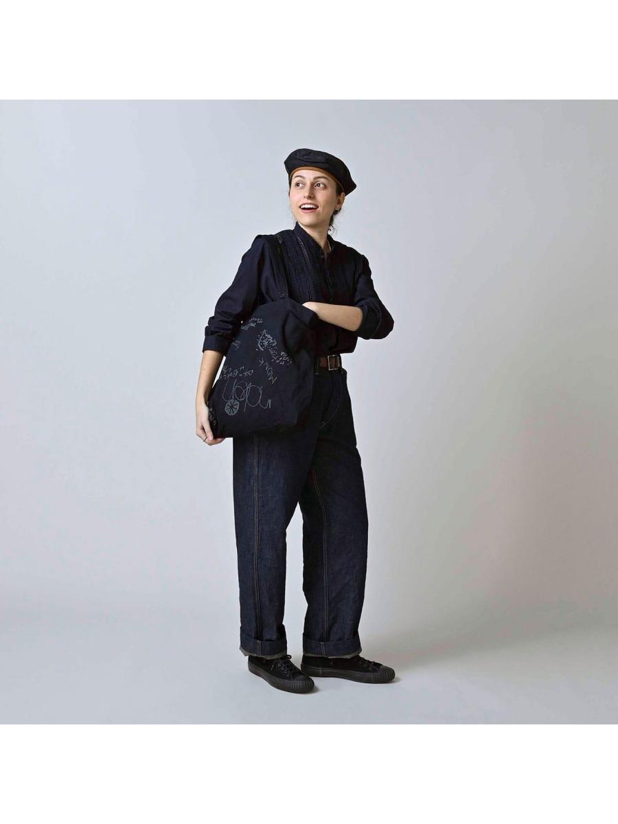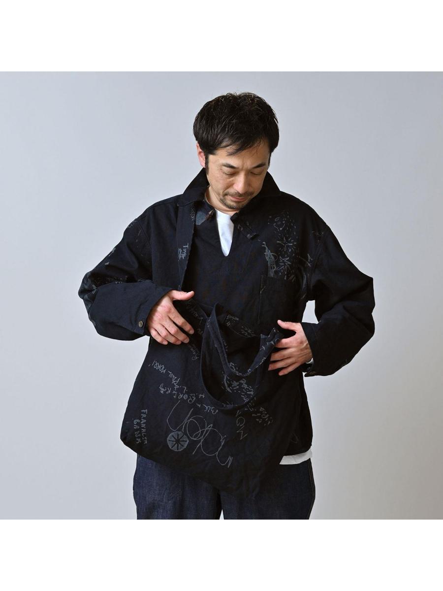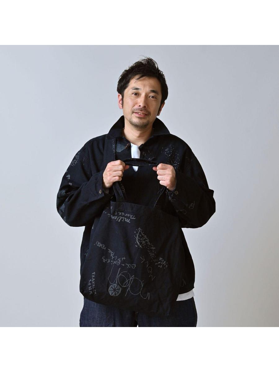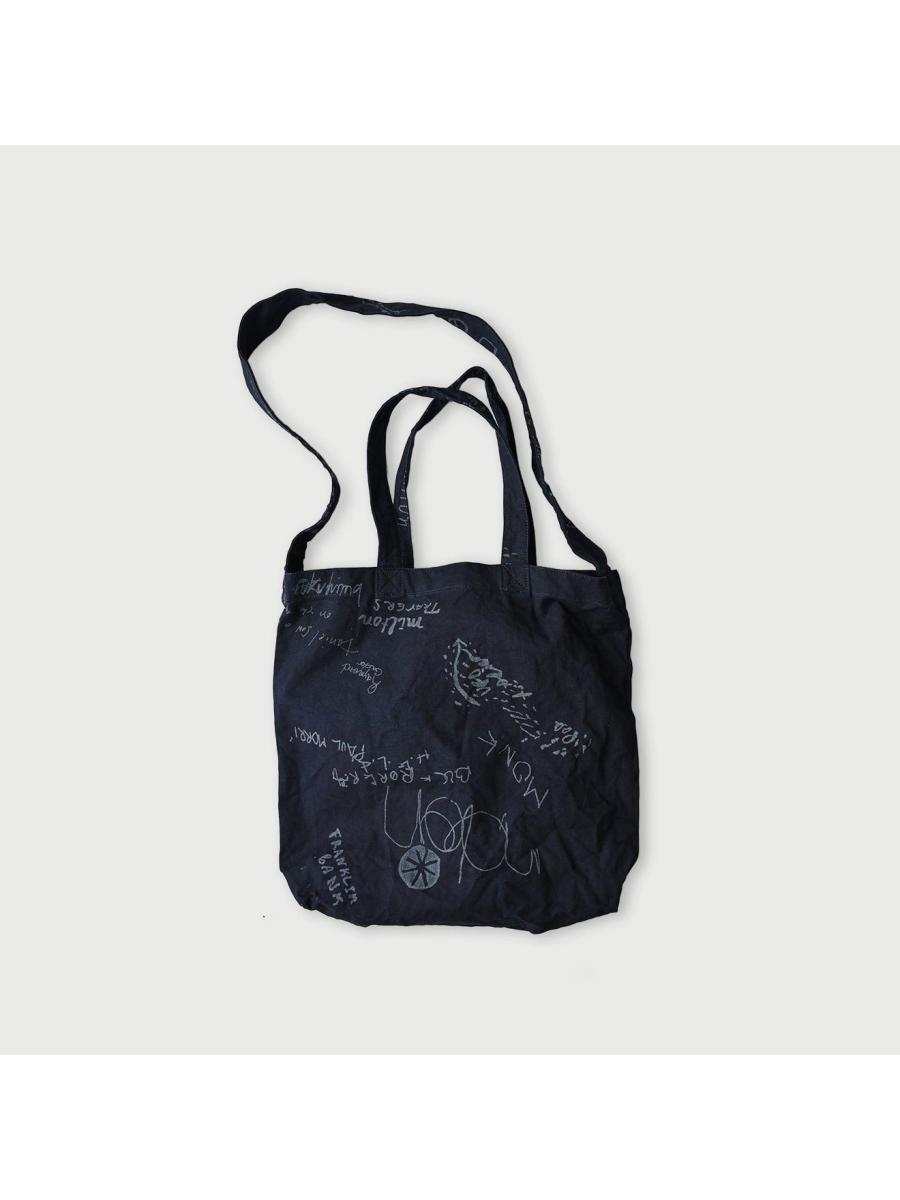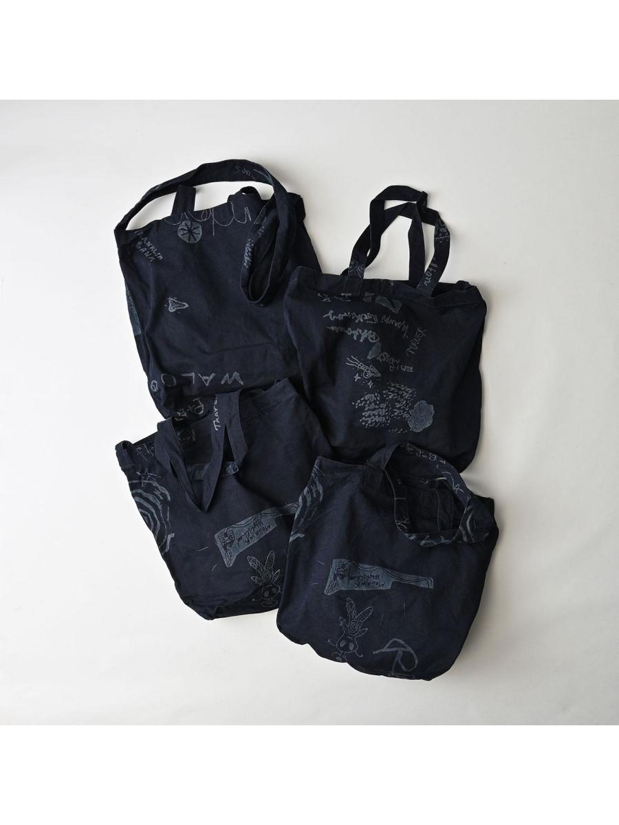 ダック落書きプリントの45トート(インディゴ・ 中)