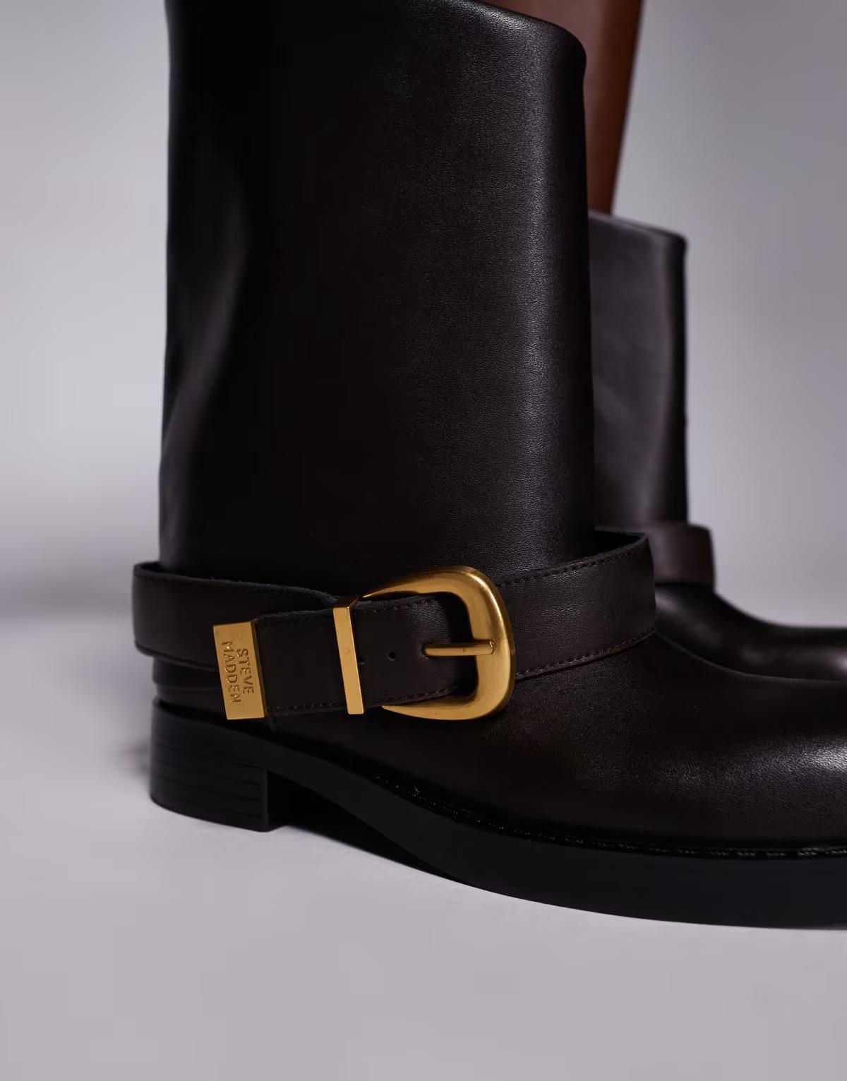 Sole: 100% Rubber, Upper: 100% Leather.Outfit sorted but don’t have the footwear to go with it? Steve Madden has every style of shoe to help pull your look together, whatever the occasion. Expect chunky trainers for your everyday vibe, as well as chic, strappy heeled sandals to elevate any look. In the Steve Madden at ASOS edit, browse everything from western boots to the 90s platform soles the brand helped redefine.