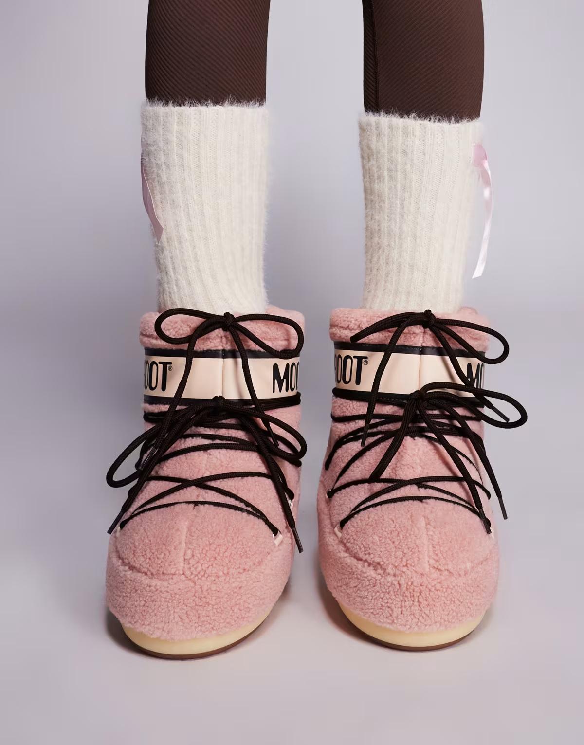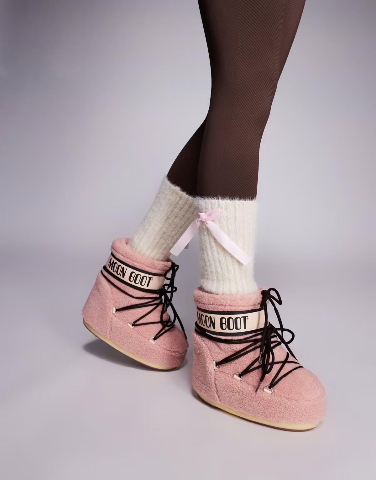 Upper: 47% Acrylic, 43% Polyester, 10% Polyvinylchloride.With Neil Armstrong et al. in mind, Giancarlo Zanatta launched his lunar-inspired footwear label, Moon Boot, in the 70s – taking one giant leap for winter footwear. Turning Armstrong’s heavy-duty boots into a firm après-ski favourite, the brand is big on bold colours, signature branding and lots of padding, for weather-beating looks on the slopes, or the streets.