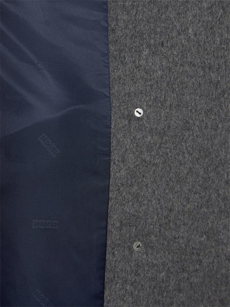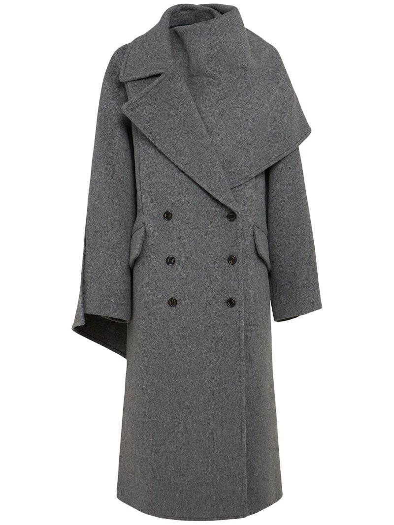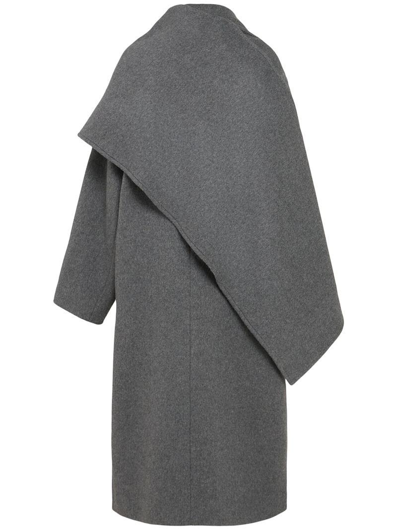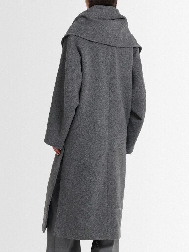 围巾装饰羊毛混纺长款大衣 - 灰色 - 女士 - Eenk - 正面纽扣开合.