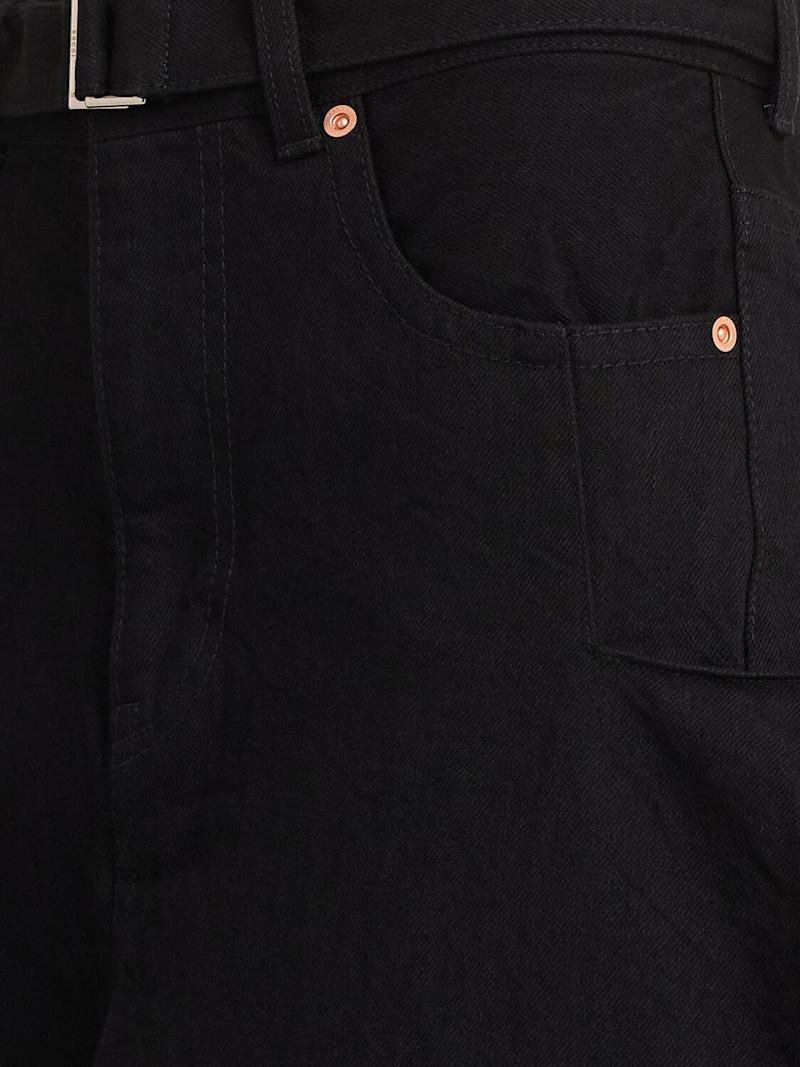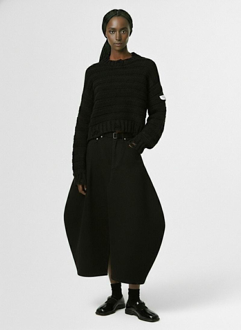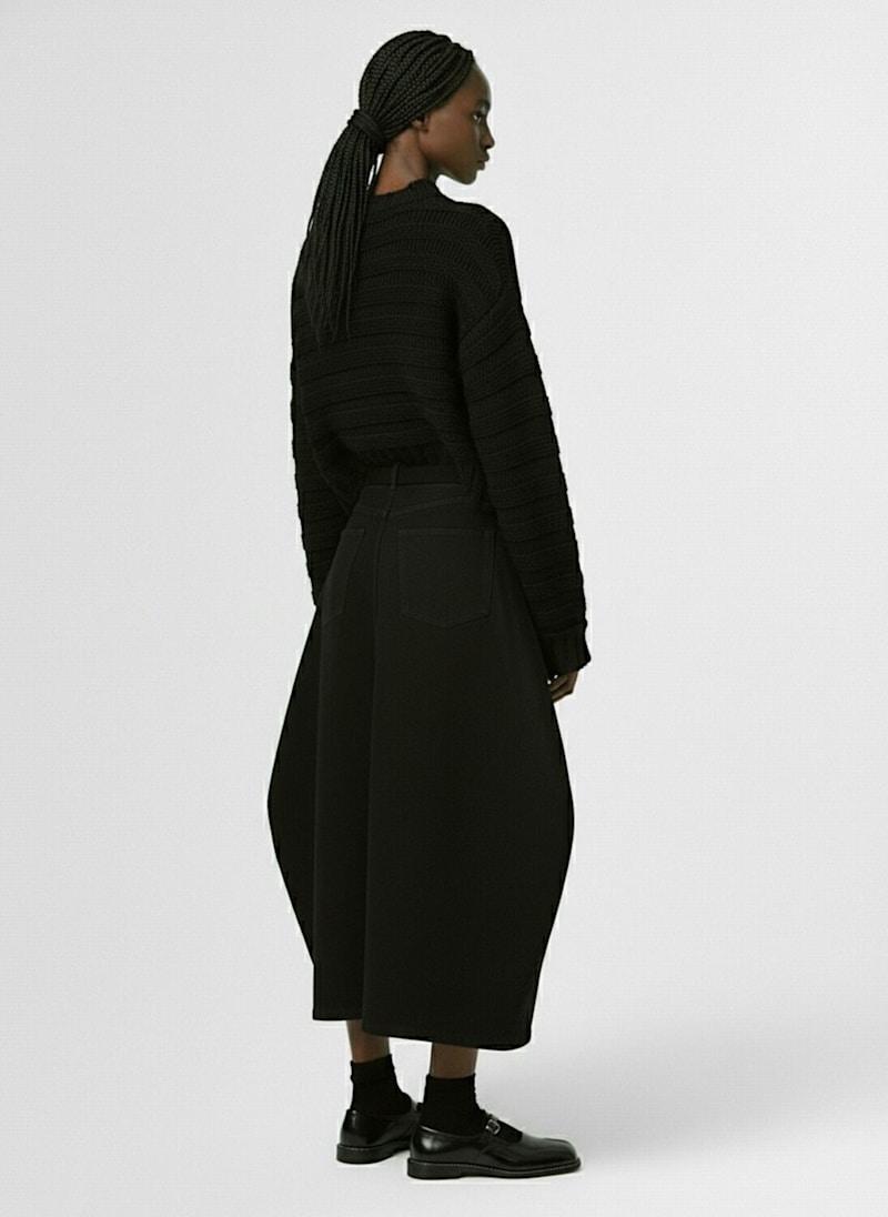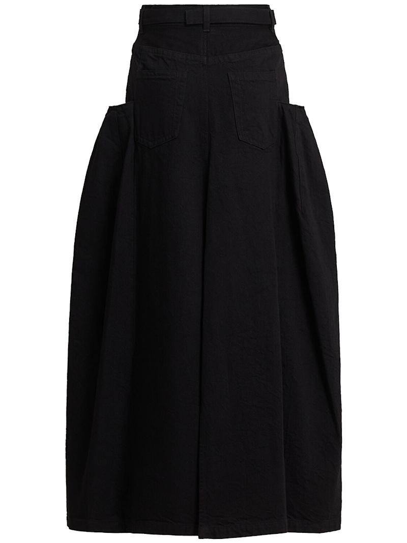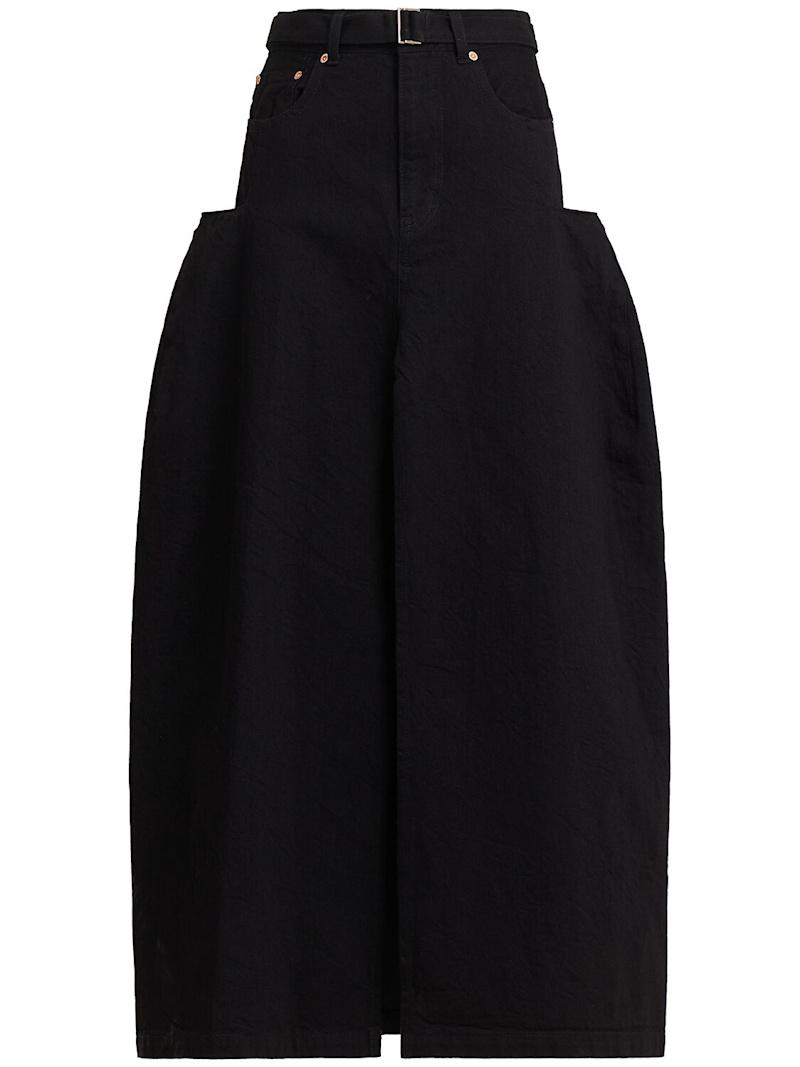 正面开叉牛仔超长半身裙 - 黑色 - 女士 - Sacai - 正面纽扣和隐藏式拉链开合.