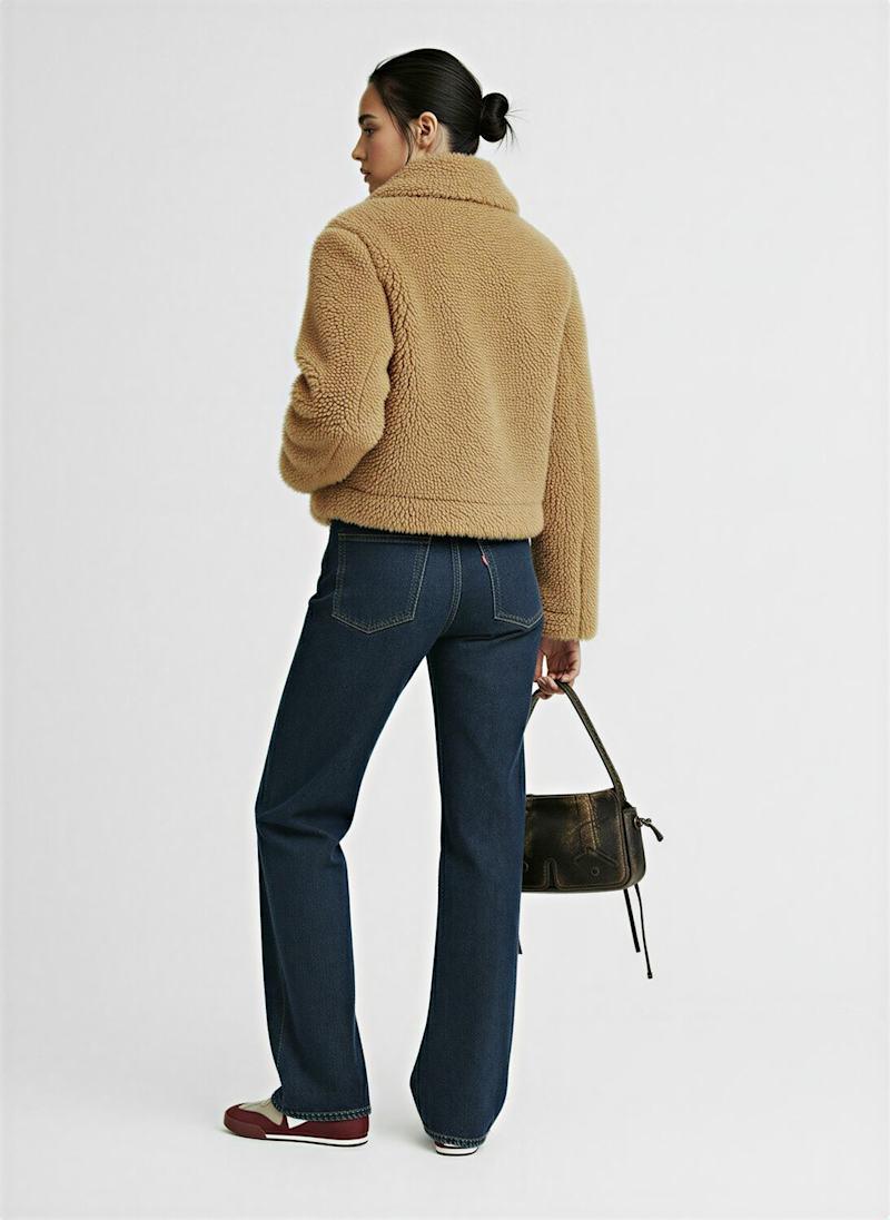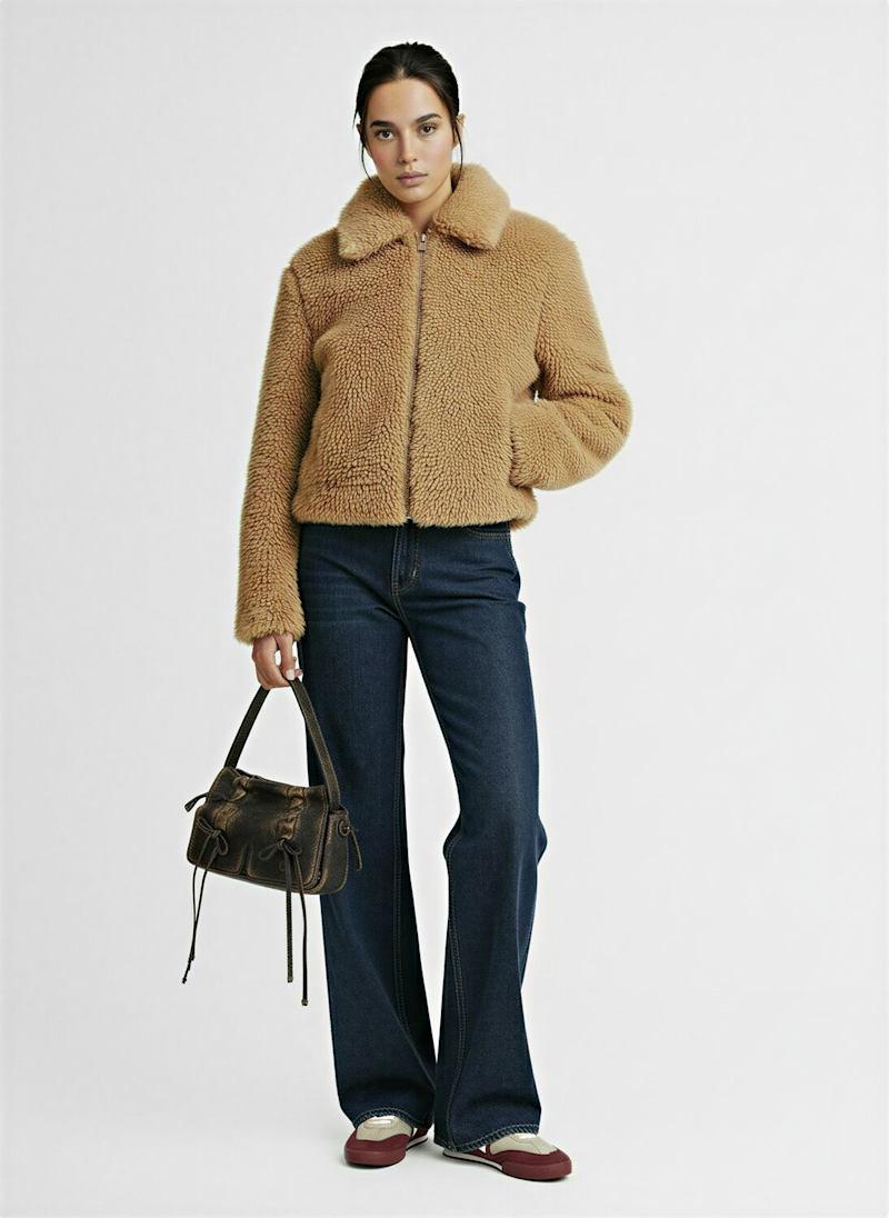 短款毛绒夹克 - 米黄色 - 女士 - Tonywack - 正面拉链开合.