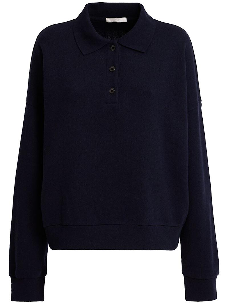 Corzas羊绒针织POLO衫 - 海军蓝 - 女士 - The Row - 正面半开襟纽扣.