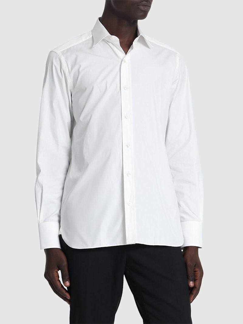 修身府绸衬衫 - 白色 - 男士 - Tom Ford - 正面纽扣开合.