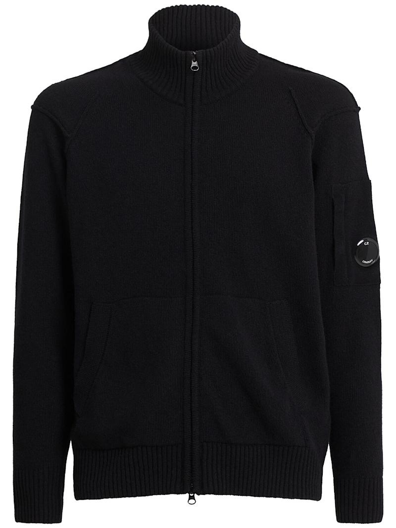 羊毛混纺针织全长拉链开合毛衣 - 黑色 - 男士 - C.