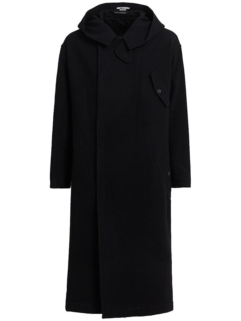 连帽羊毛混纺大衣 - 黑色 - 男士 - Yohji Yamamoto - 不可拆卸的风帽.