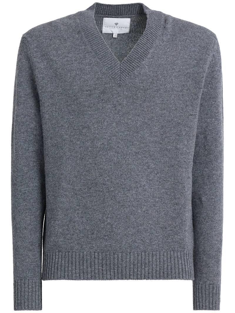 羊毛针织V领毛衣 - Grigio Melange - 男士 - Seven Gauge - 罗纹领口、袖口和下摆