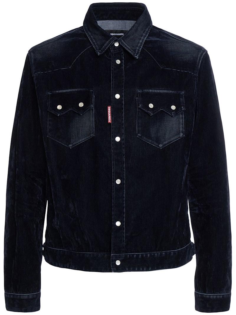 Flocked Cord牛仔夹克 - 海军蓝 - 男士 - Dsquared2 - 正面纽扣开合.