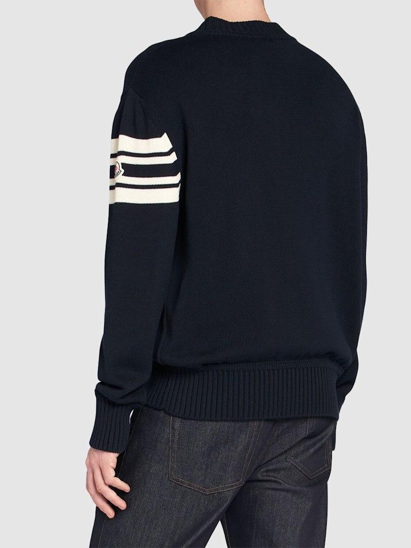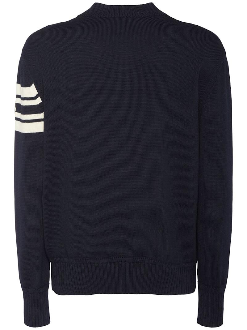 Logo棉质纱线圆领毛衣 - Obsidian Blue - 男士 - Moncler - 采用纯棉制作.