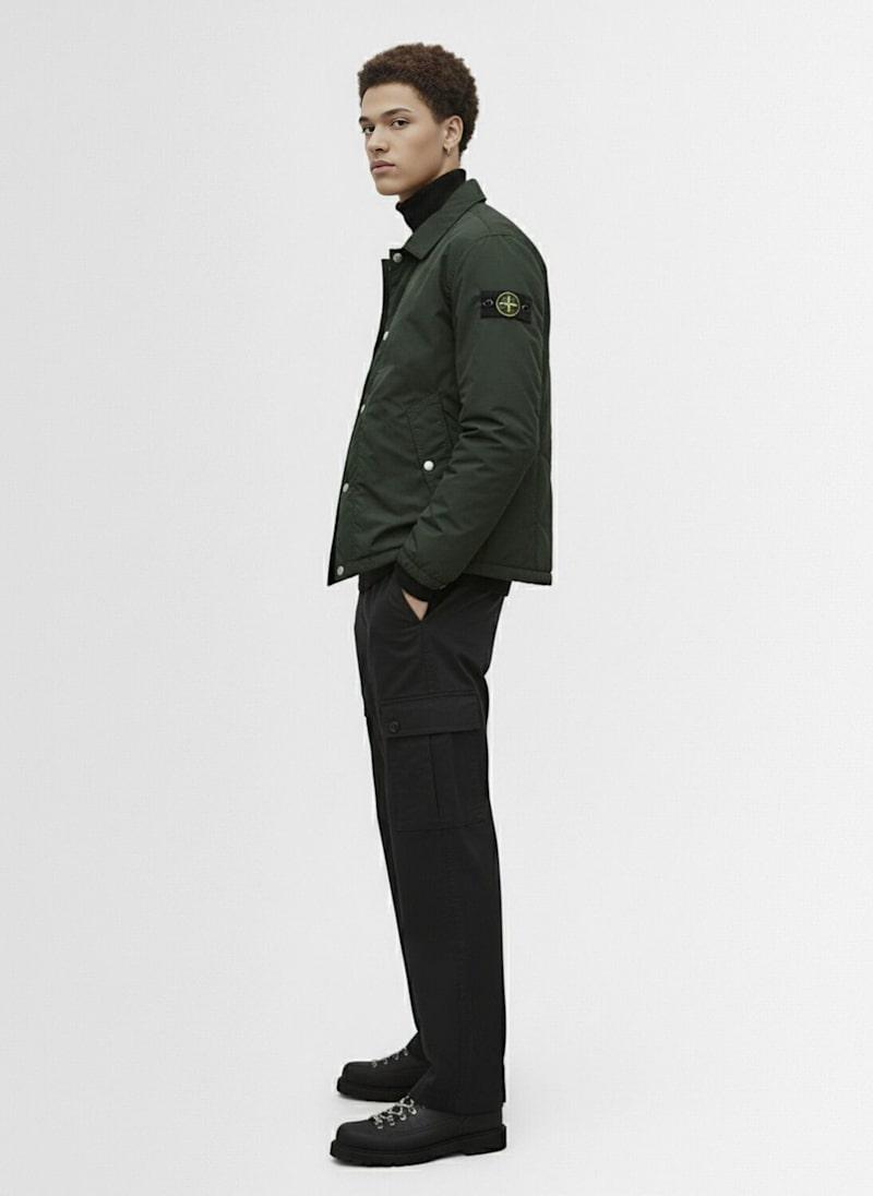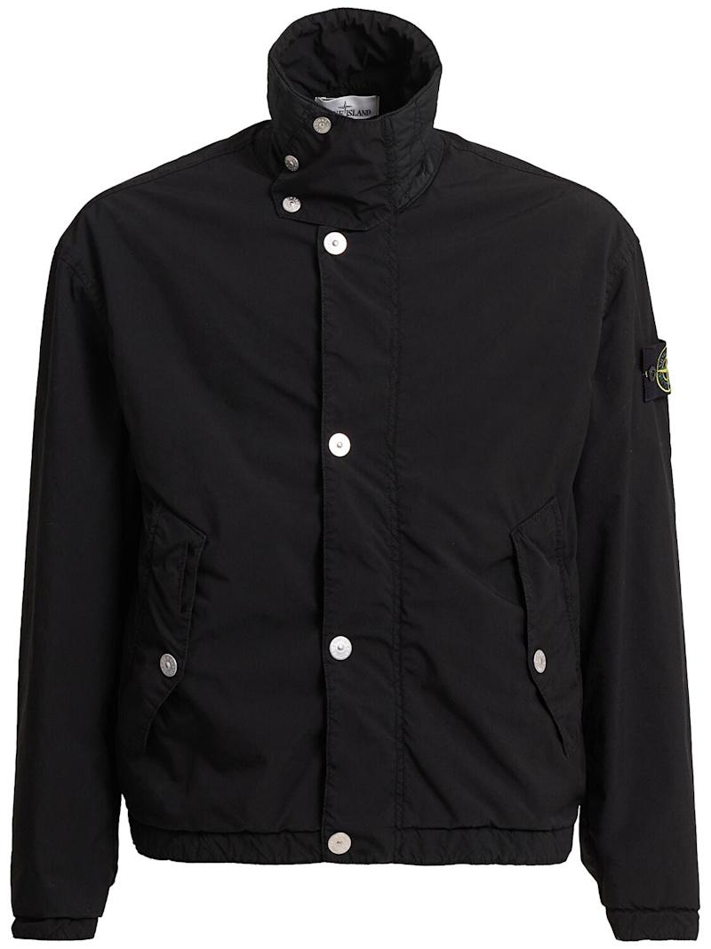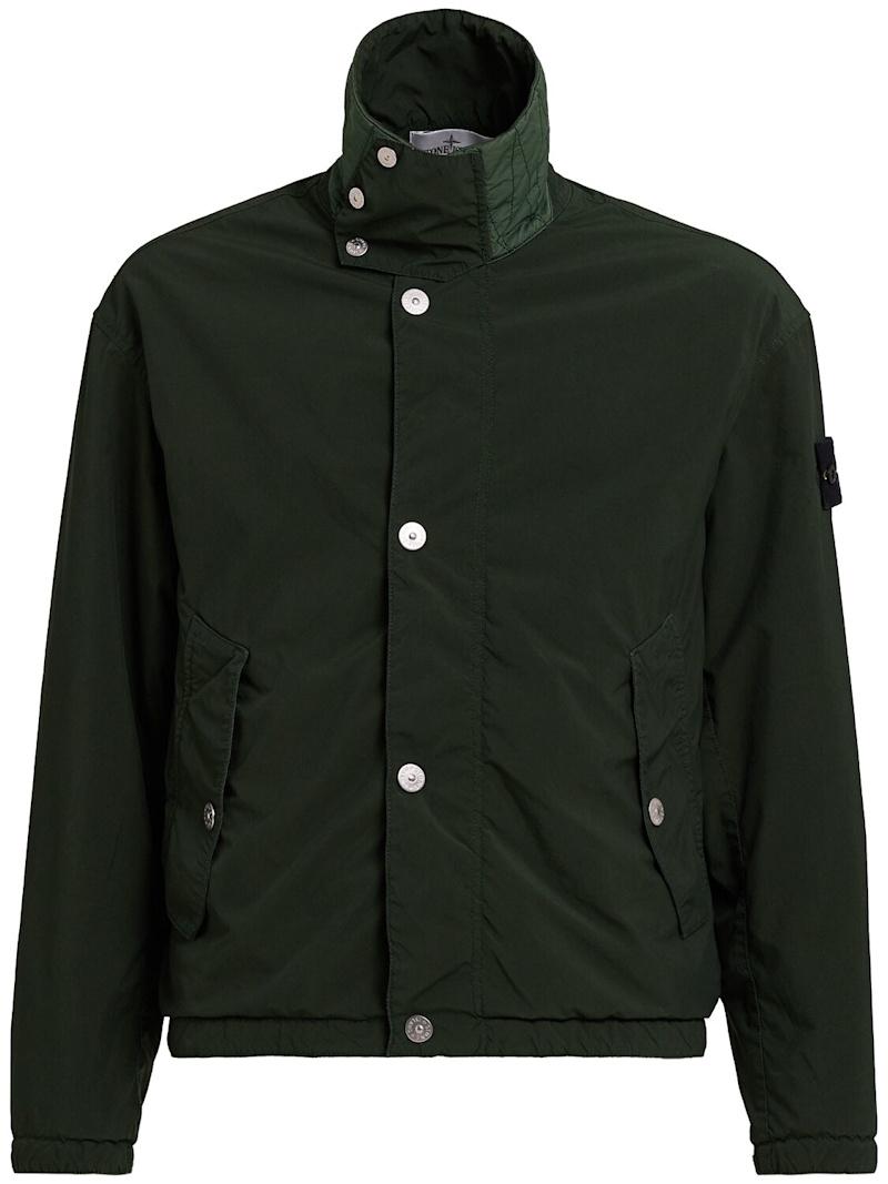 轻薄聚酯混纺夹克 - Juniper - 男士 - Stone Island - 正面按扣和隐形拉链开合.