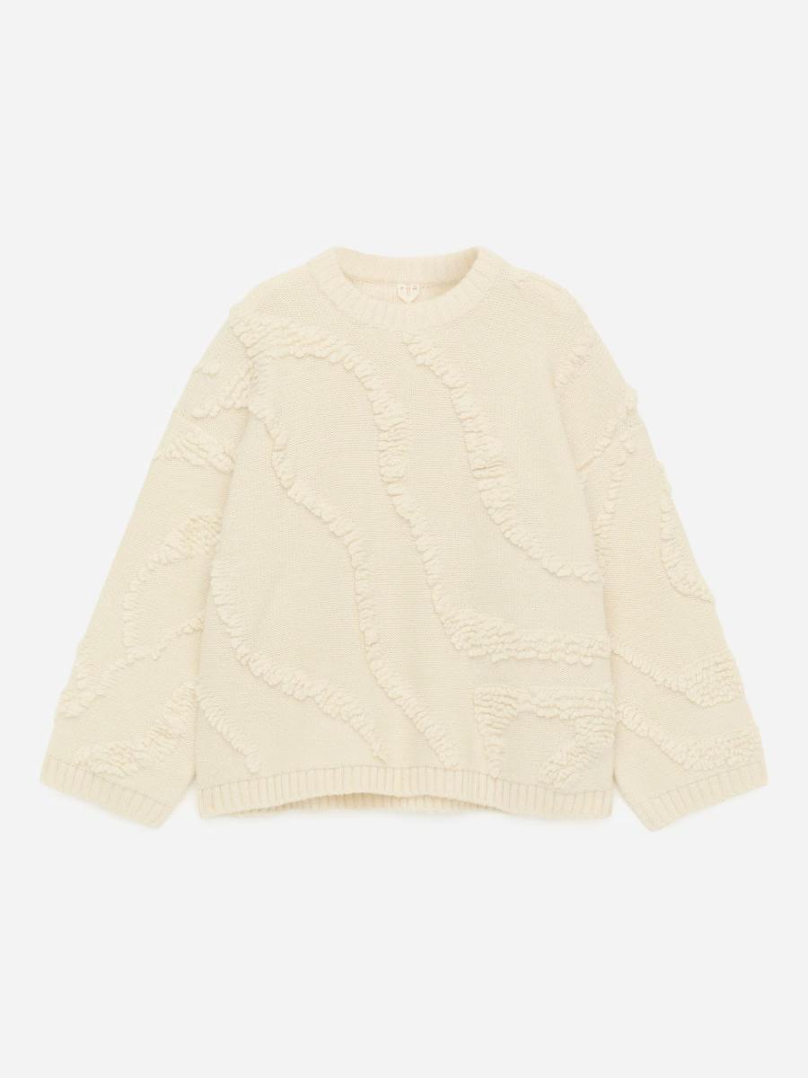 Jumper crafted from a blend of cotton and wool. A relaxed fit featuring ribbed trims and a subtle zebra knit pattern. The style contains 51% RWS wool (TE-00047206). Products certified to the Responsible Wool Standard (RWS) contain wool fiber from farms independently certified to animal welfare and land management requirements.ARKET/Women's clothes/Women's knitwear/Women's crew-neck jumpers