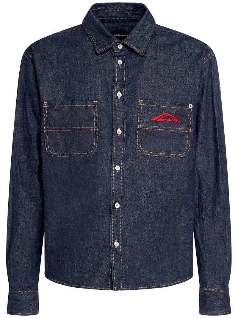 Icon Boxy牛仔衬衫 - 海军蓝 - 男士 - Dsquared2 - 正面纽扣开合.