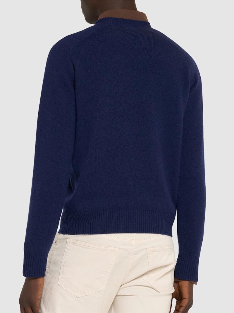 羊毛&羊绒圆领毛衣 - 海洋蓝 - 男士 - Tom Ford - 罗纹领口、袖口和下摆