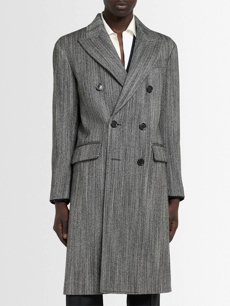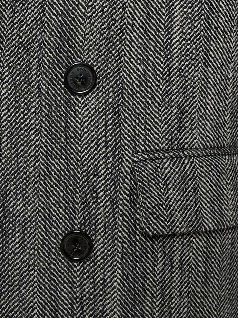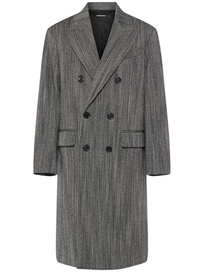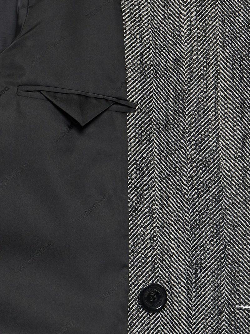 双排扣千鸟格大衣 - 白色/黑色 - 男士 - Dsquared2 - 正面纽扣开合.