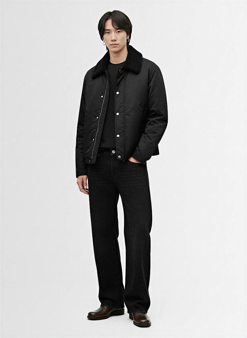 混棉夹克 - 黑色 - 男士 - Our Legacy - 正面纽扣和隐形拉链开合.