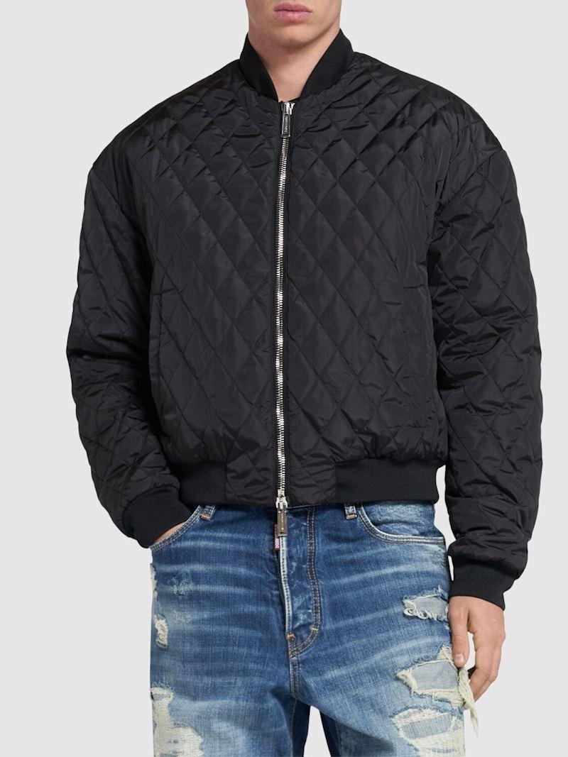 Dsquared2绗缝飞行员夹克 - 黑色 - 男士 - Dsquared2 - 正面拉链开合.