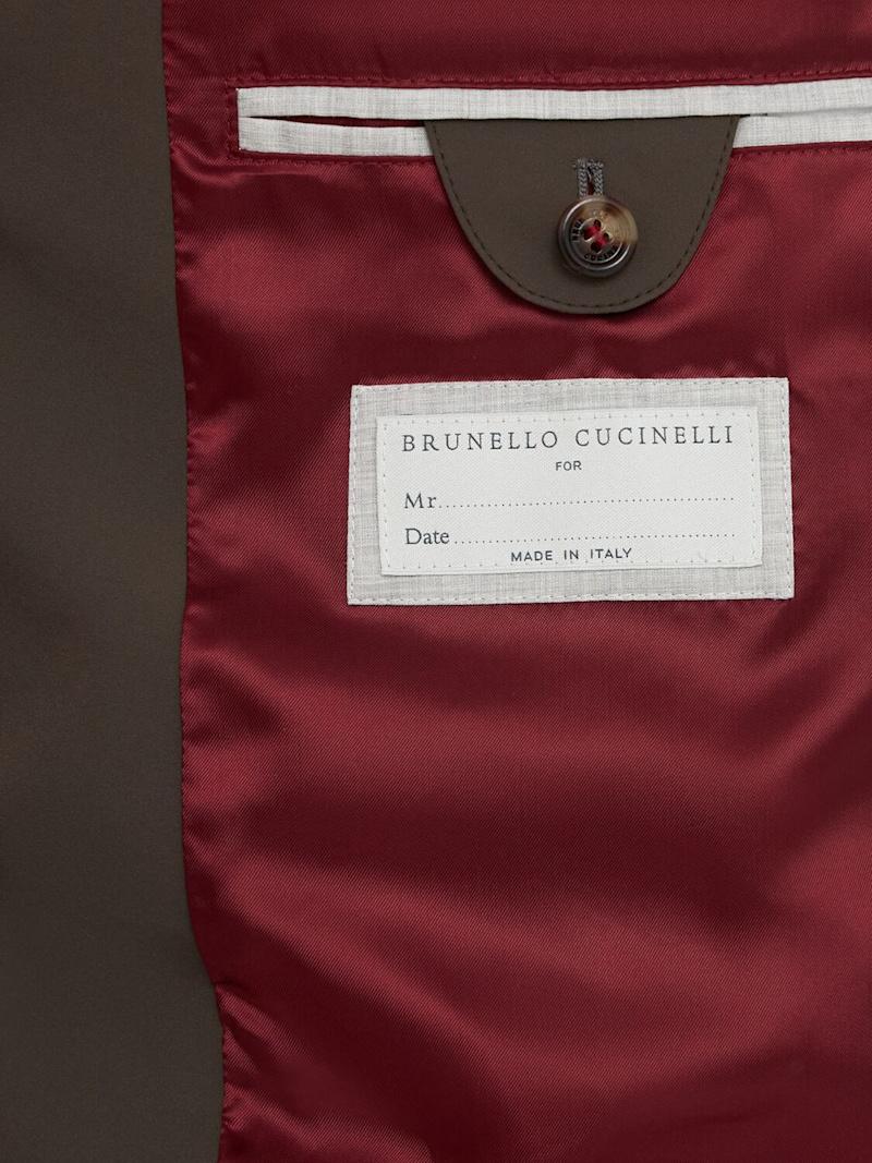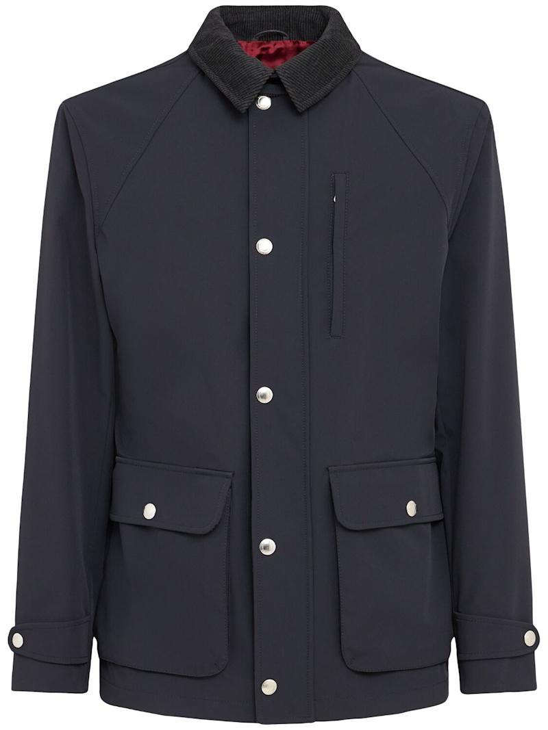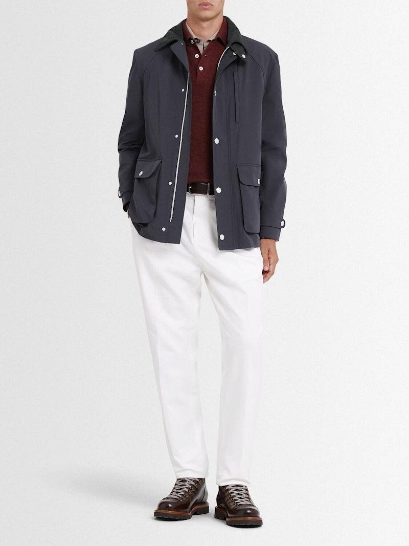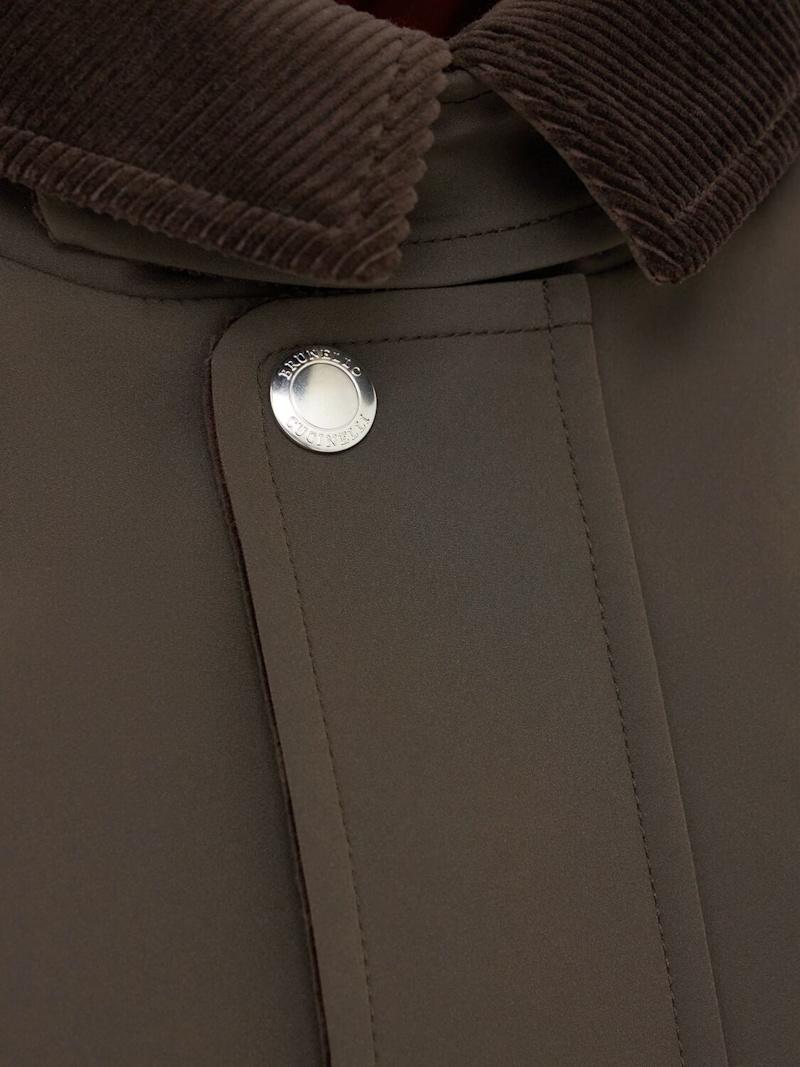 尼龙混纺3个口袋夹克 - 棕色 - 男士 - Brunello Cucinelli - 正面纽扣和隐藏式拉链开合.