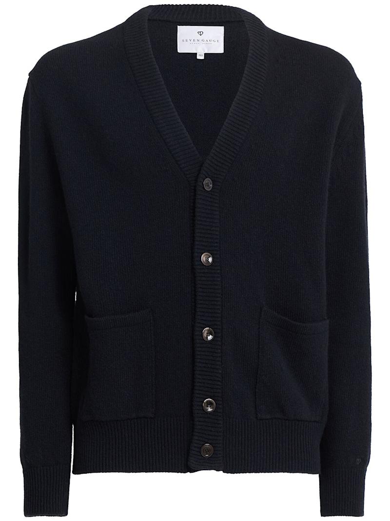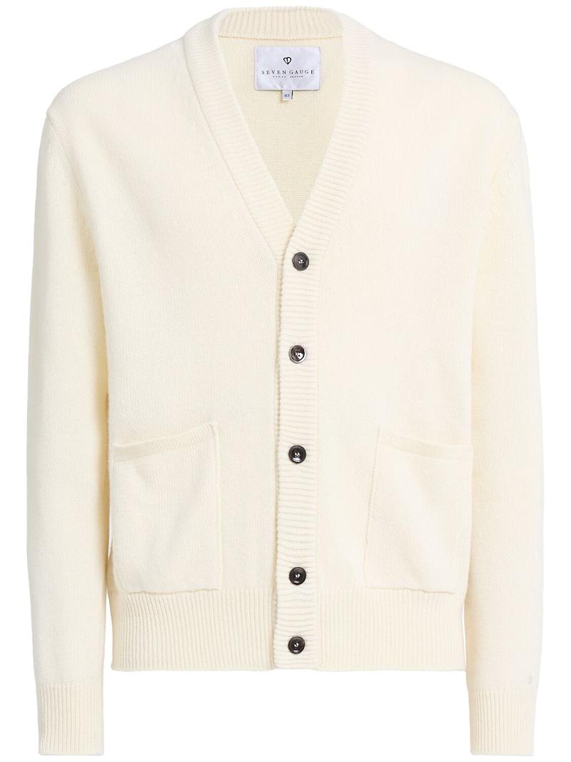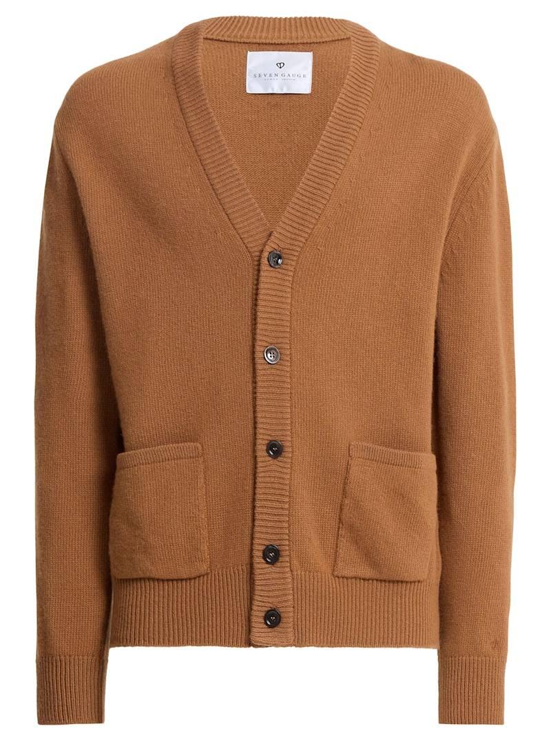 羊毛针织开衫 - Nocciola - 男士 - Seven Gauge - 正面纽扣开合.