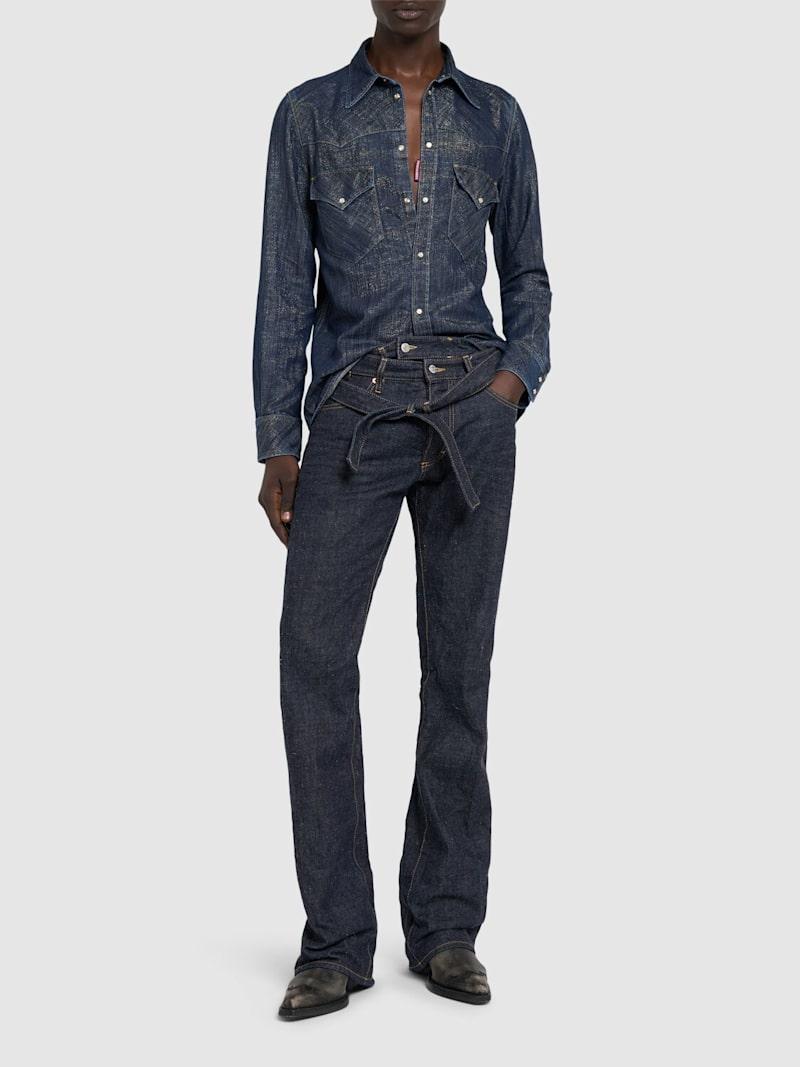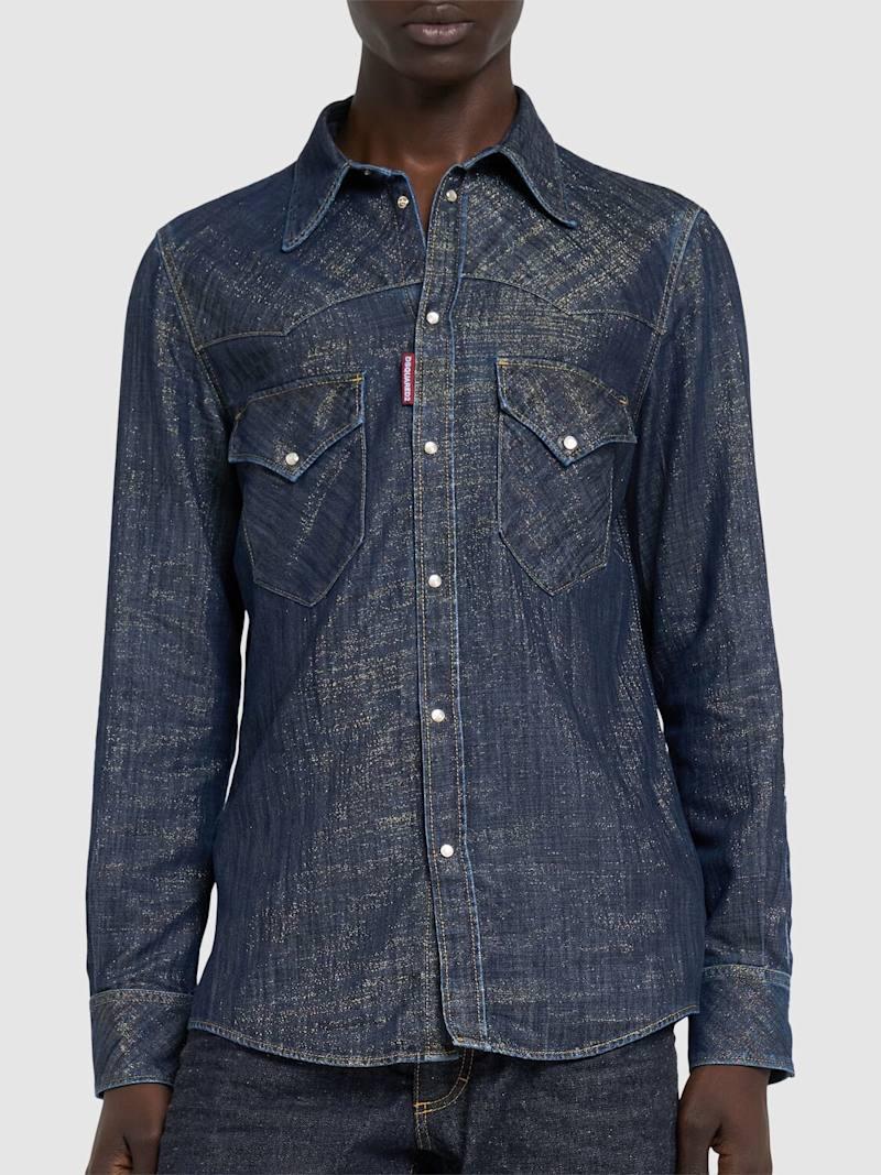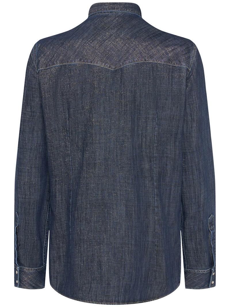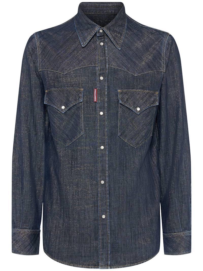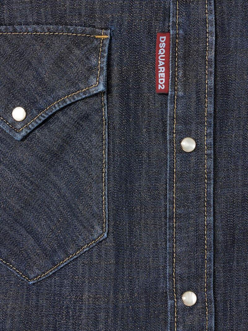 金银丝牛仔西部衬衫 - 海军蓝 - 男士 - Dsquared2 - 正面按扣开合.