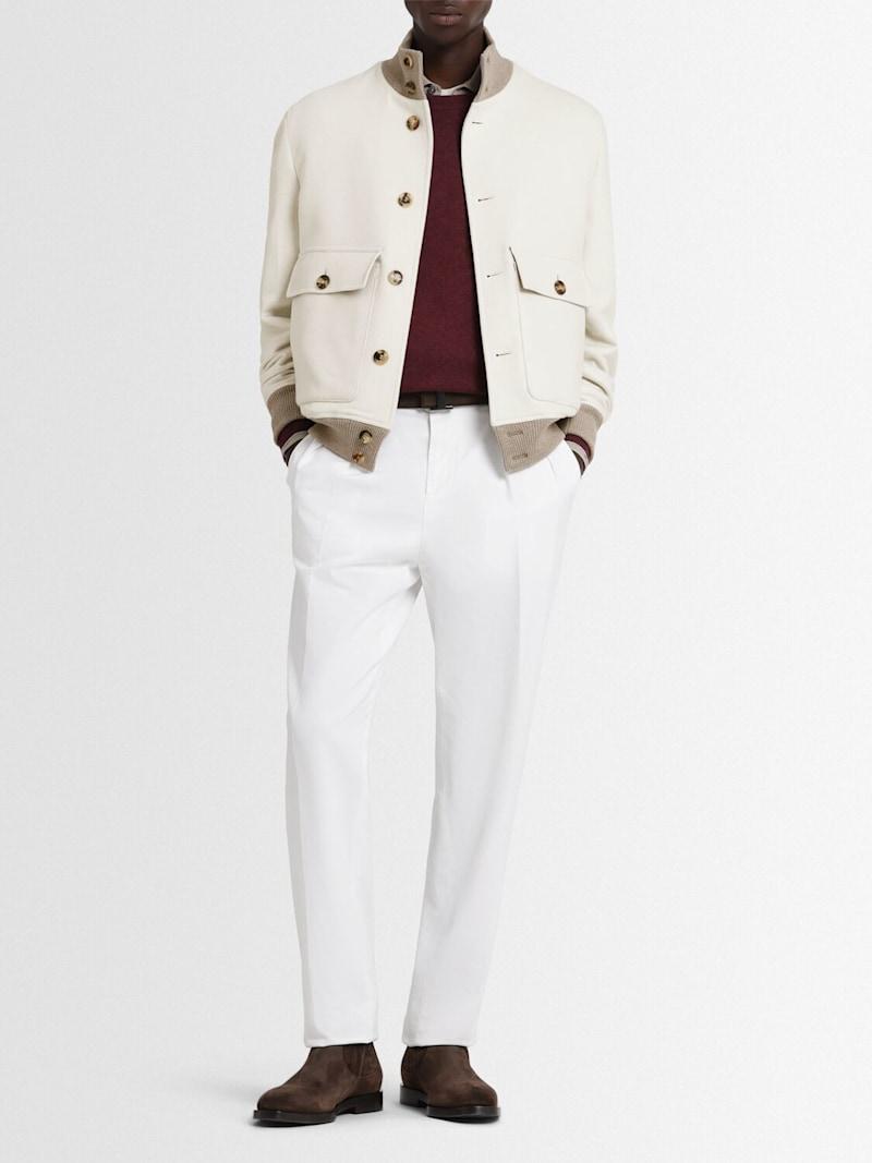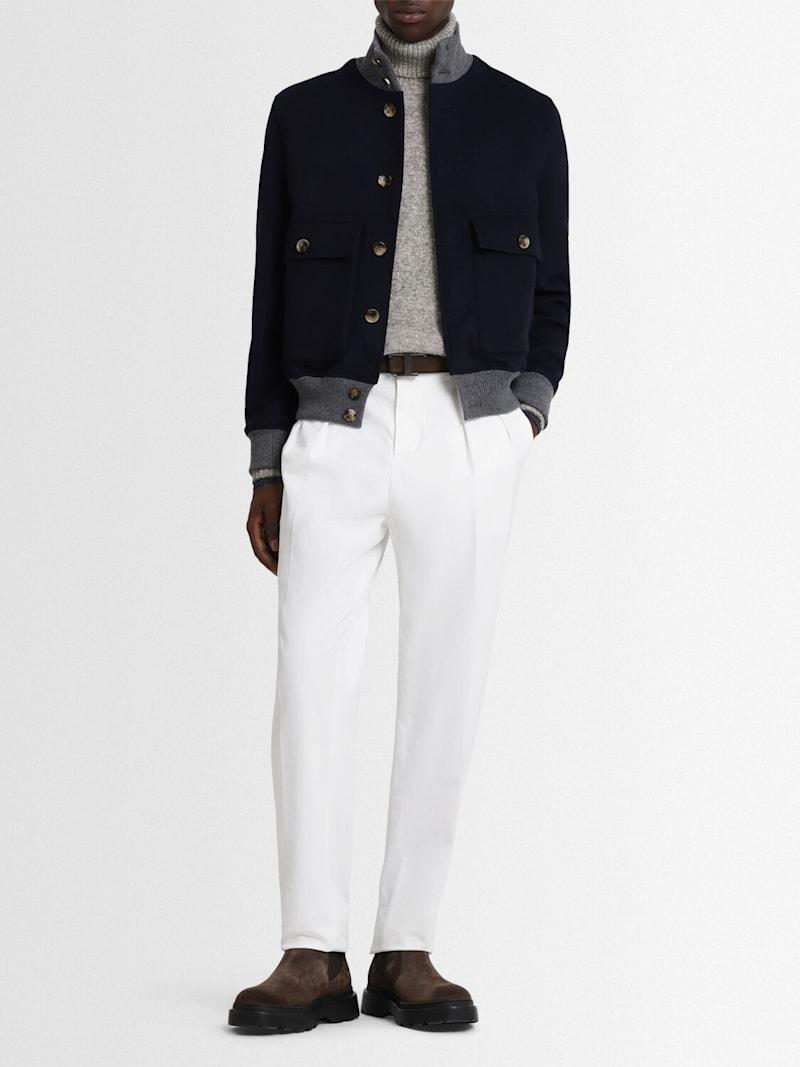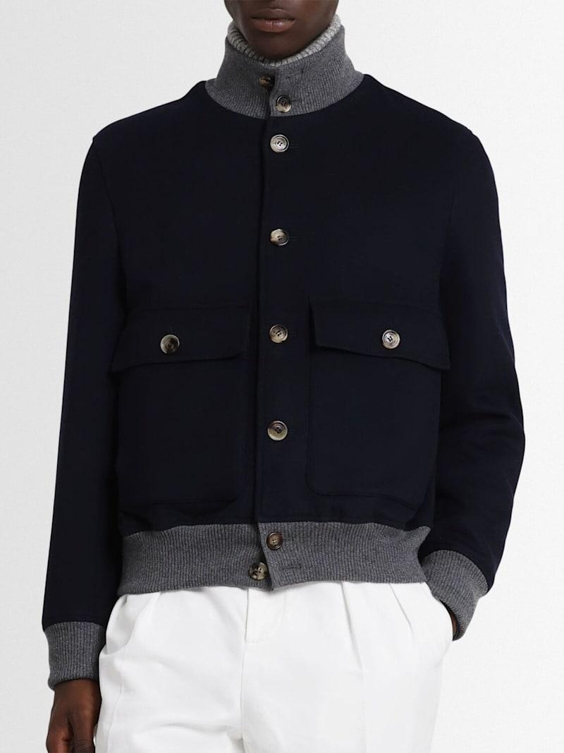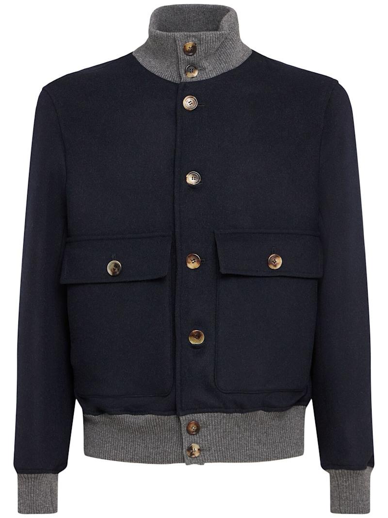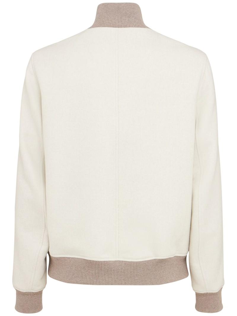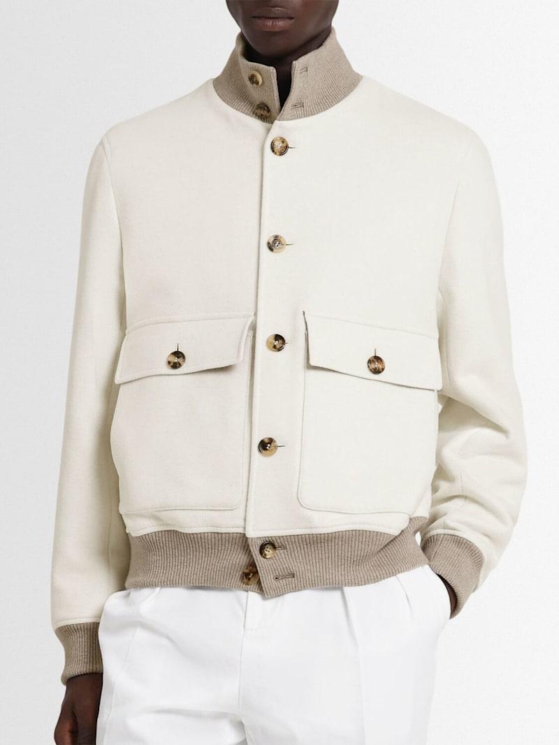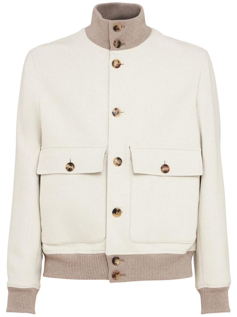 短款羊毛飞行员夹克 - Panama/Beige - 男士 - Brunello Cucinelli - 正面纽扣开合.