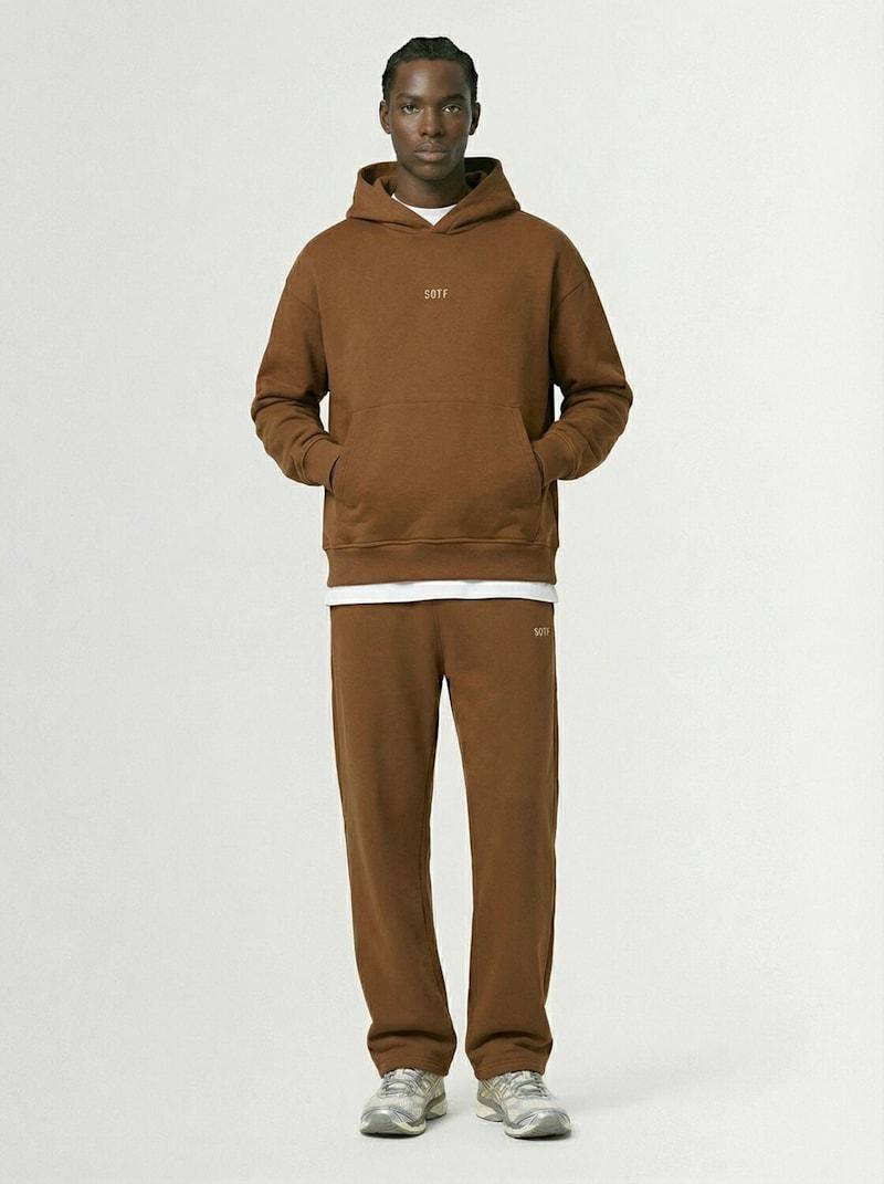 混棉连帽卫衣 - 棕色 - 男士 - SOTF - 不可拆卸的风帽.