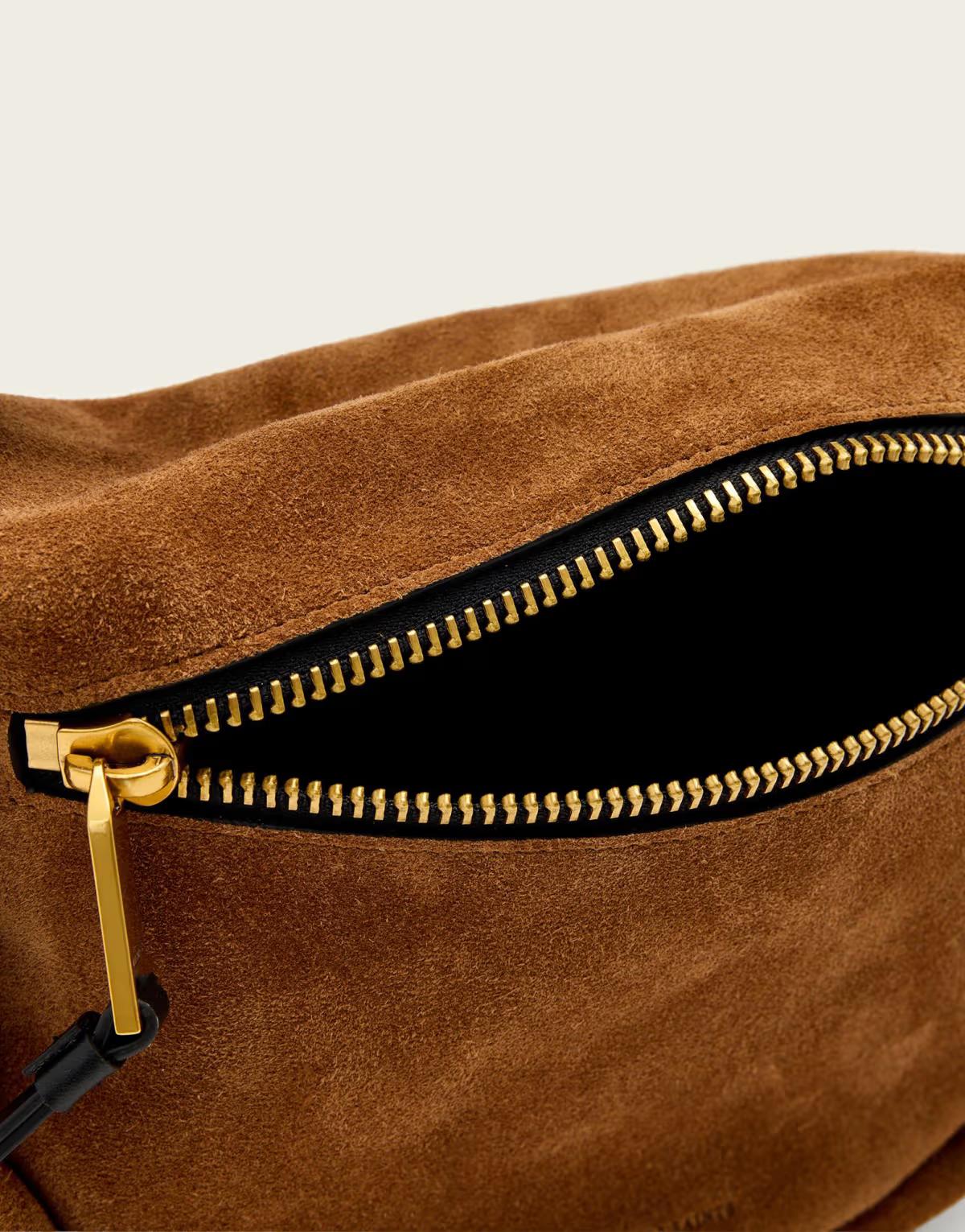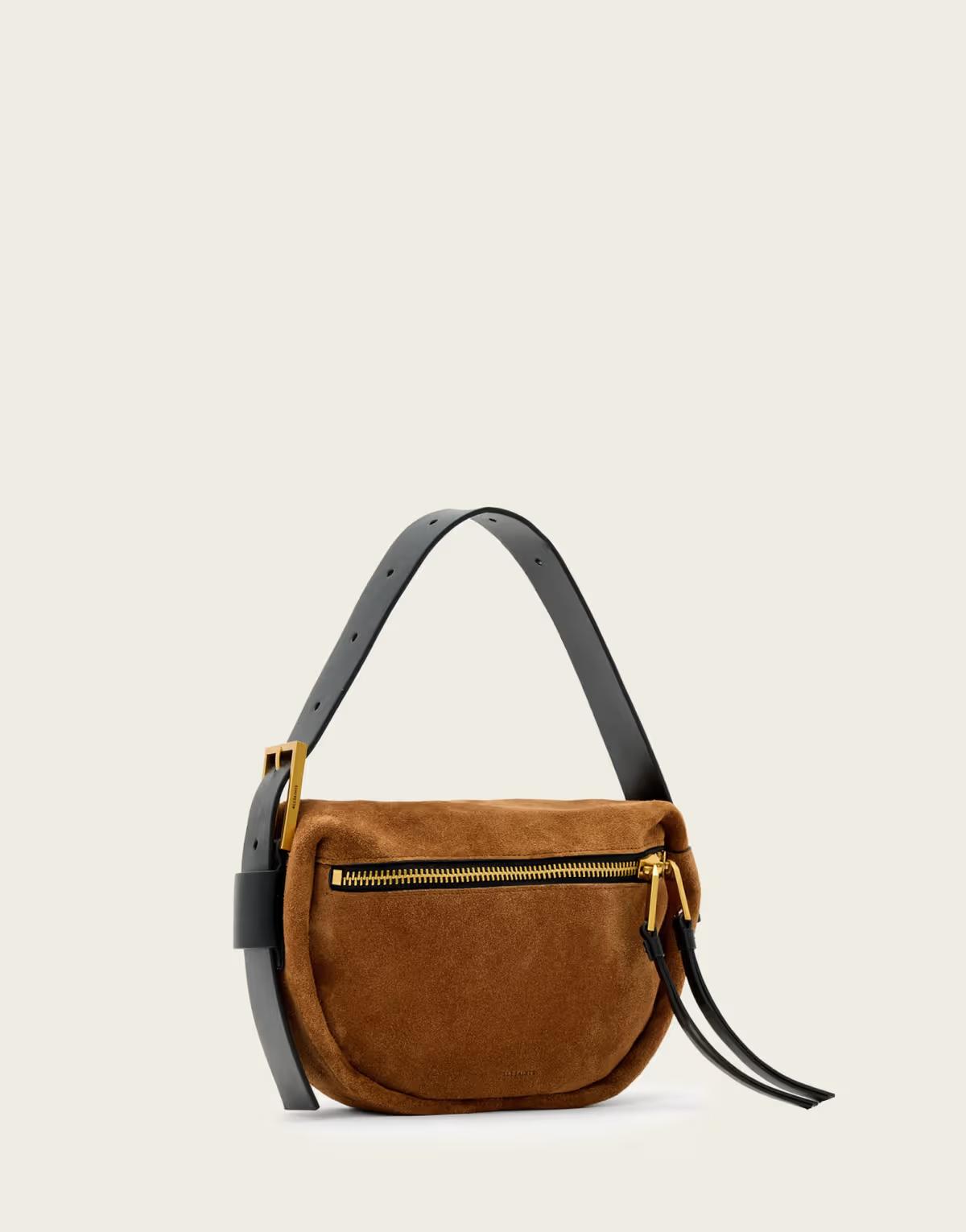 Allsaints noemie leather suede mini grab bag in tan