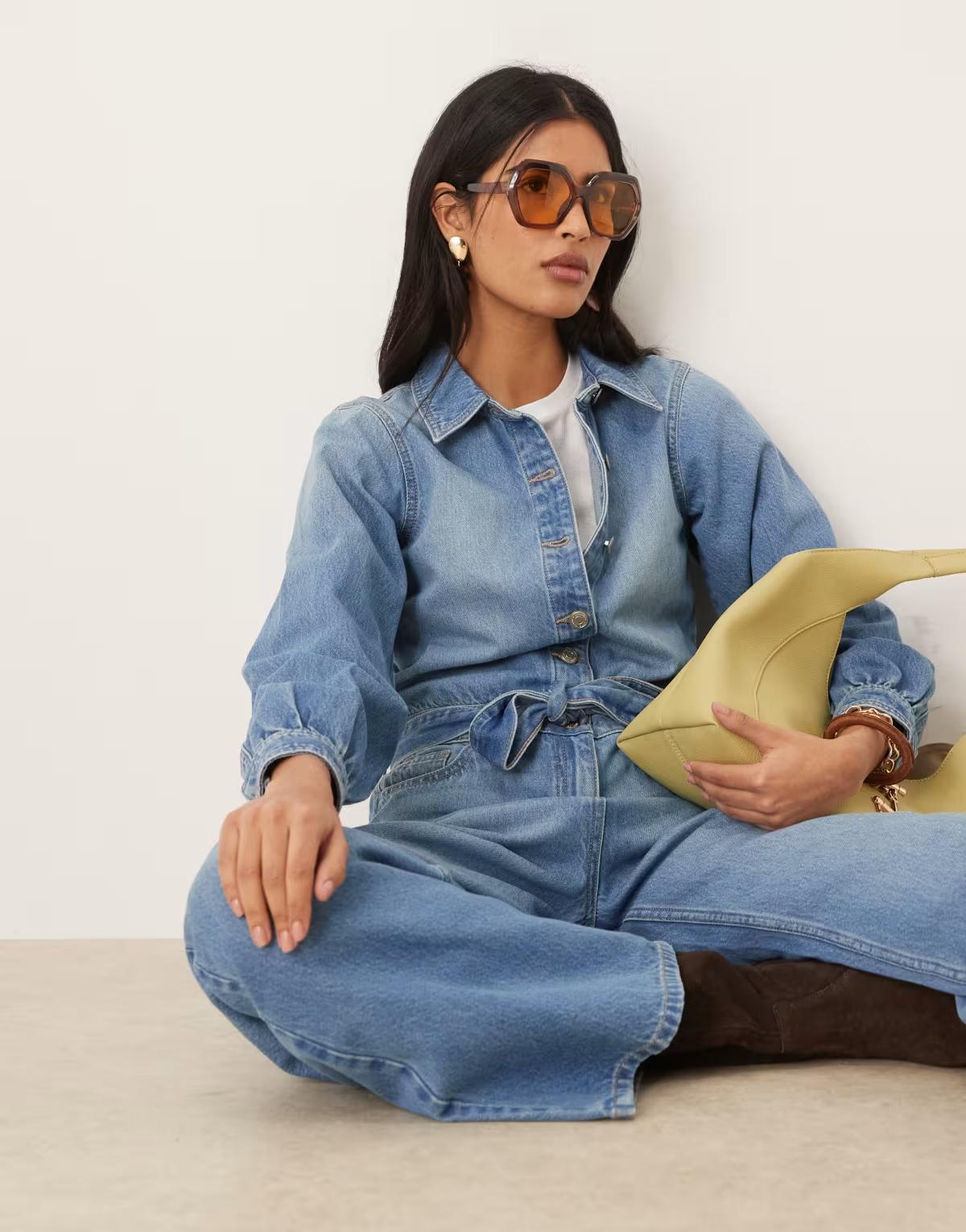 Nobody's Child denim blouson sleeve jumpsuit in blue