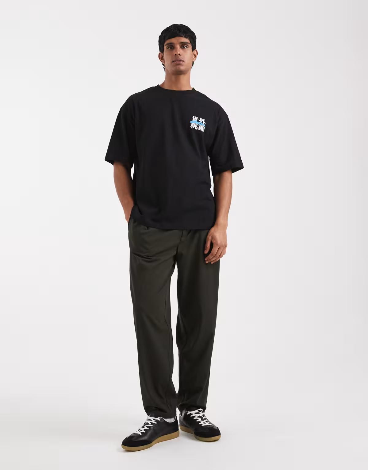 ASOS DESIGN oversized t-shirt with text graphic in black