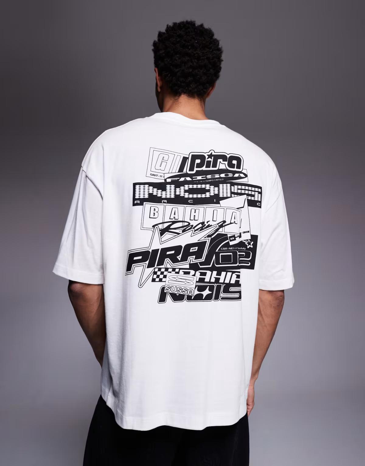 ASOS DESIGN oversized t-shirt with street text graphic in white