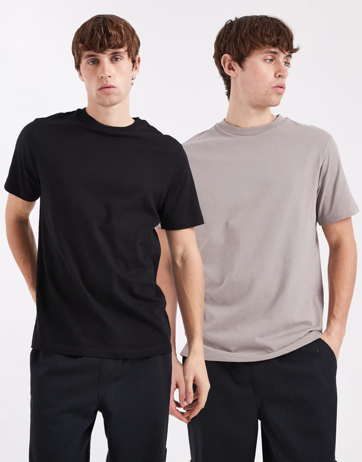 ASOS DESIGN Essentials 2 pack crew neck t-shirt in black and charcoal