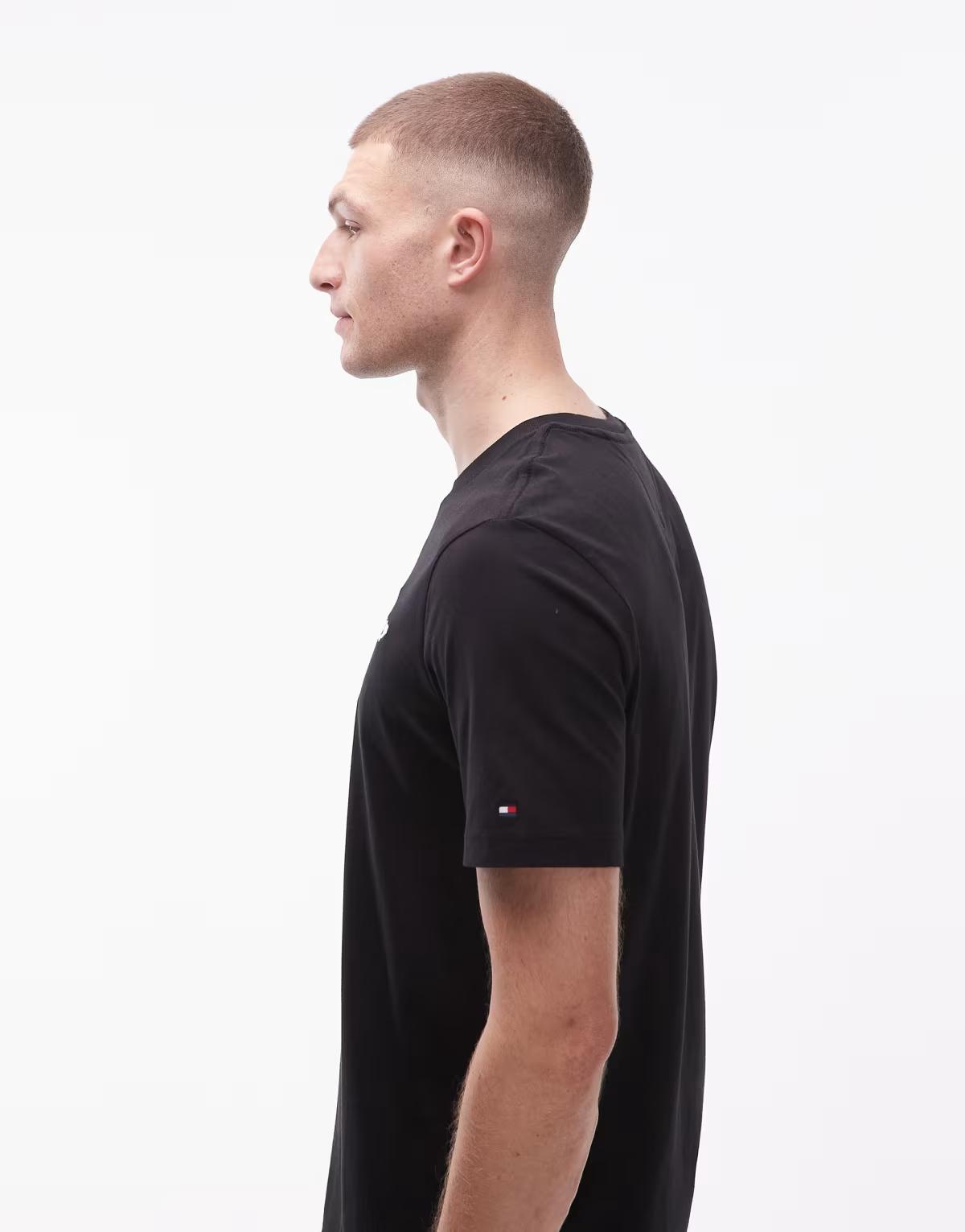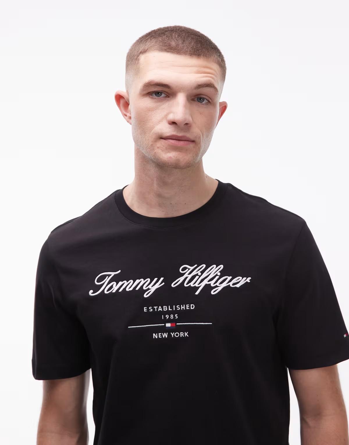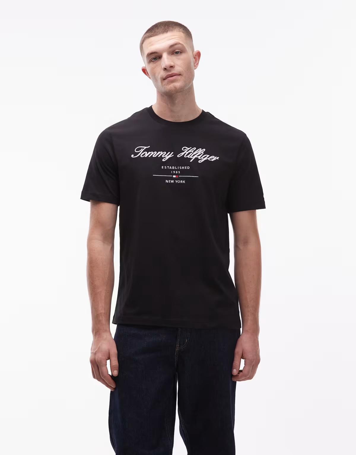 Tommy Hilfiger script stacked centre logo t-shirt in black
