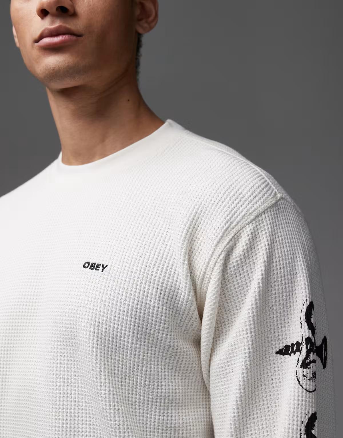Machine wash according to instructions on care labelMain: 60% Cotton, 40% Polyester.Founded in 2001, US streetwear label Obey is an extension of graffiti artist Shepard Fairey’s street and fine art campaign. Moving his populist views from the canvas to clothing, Fairey draws on workwear and military design influences across a selection of sweatshirts, print T-shirts and hoodies.
