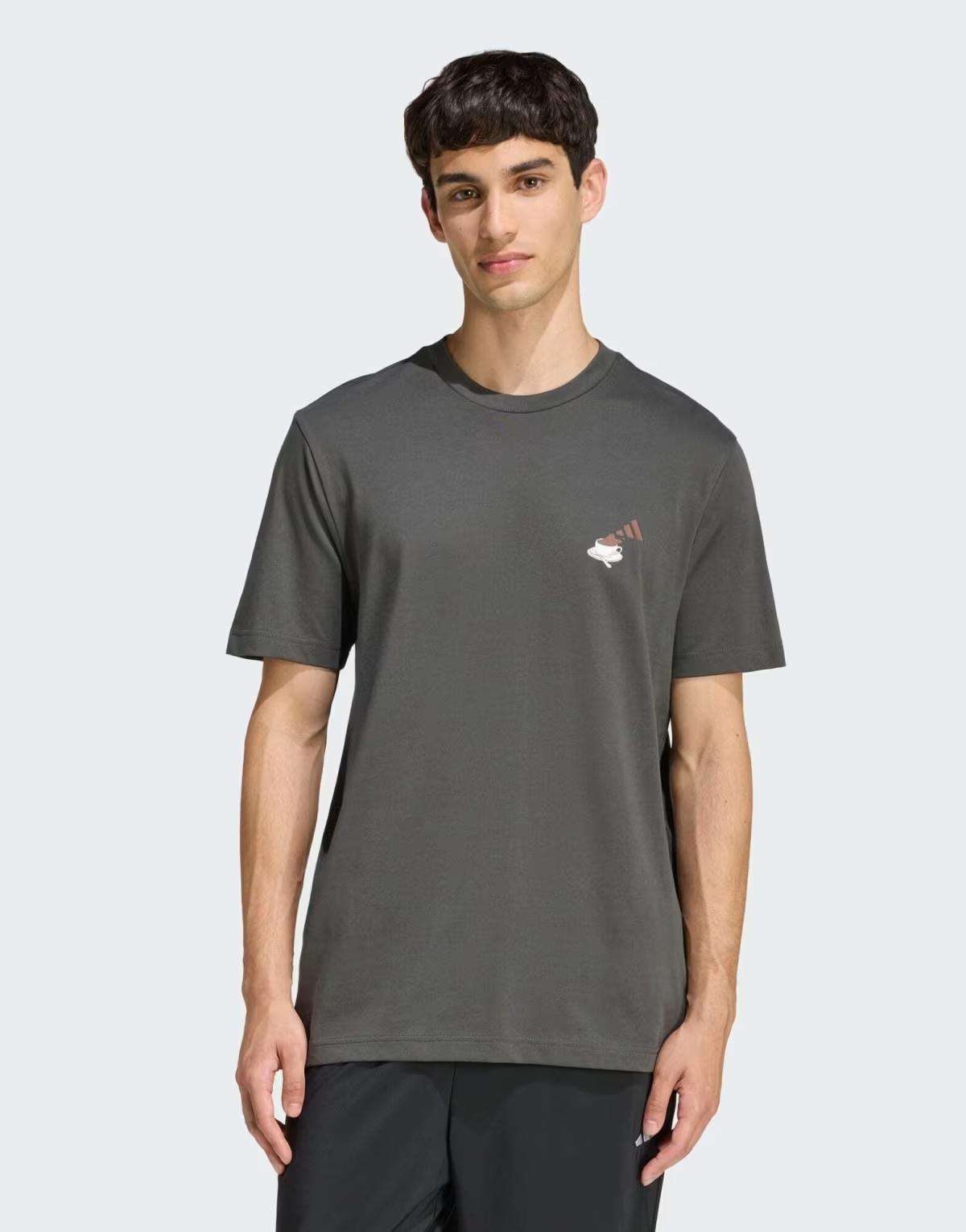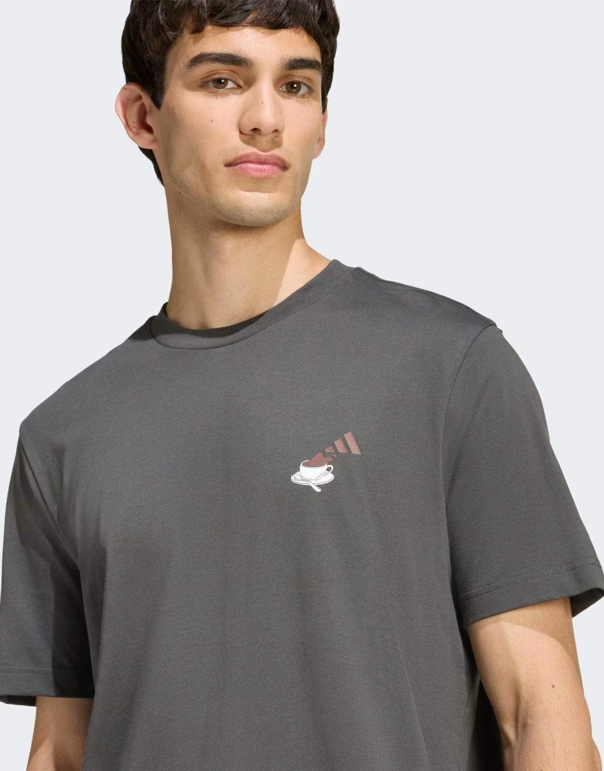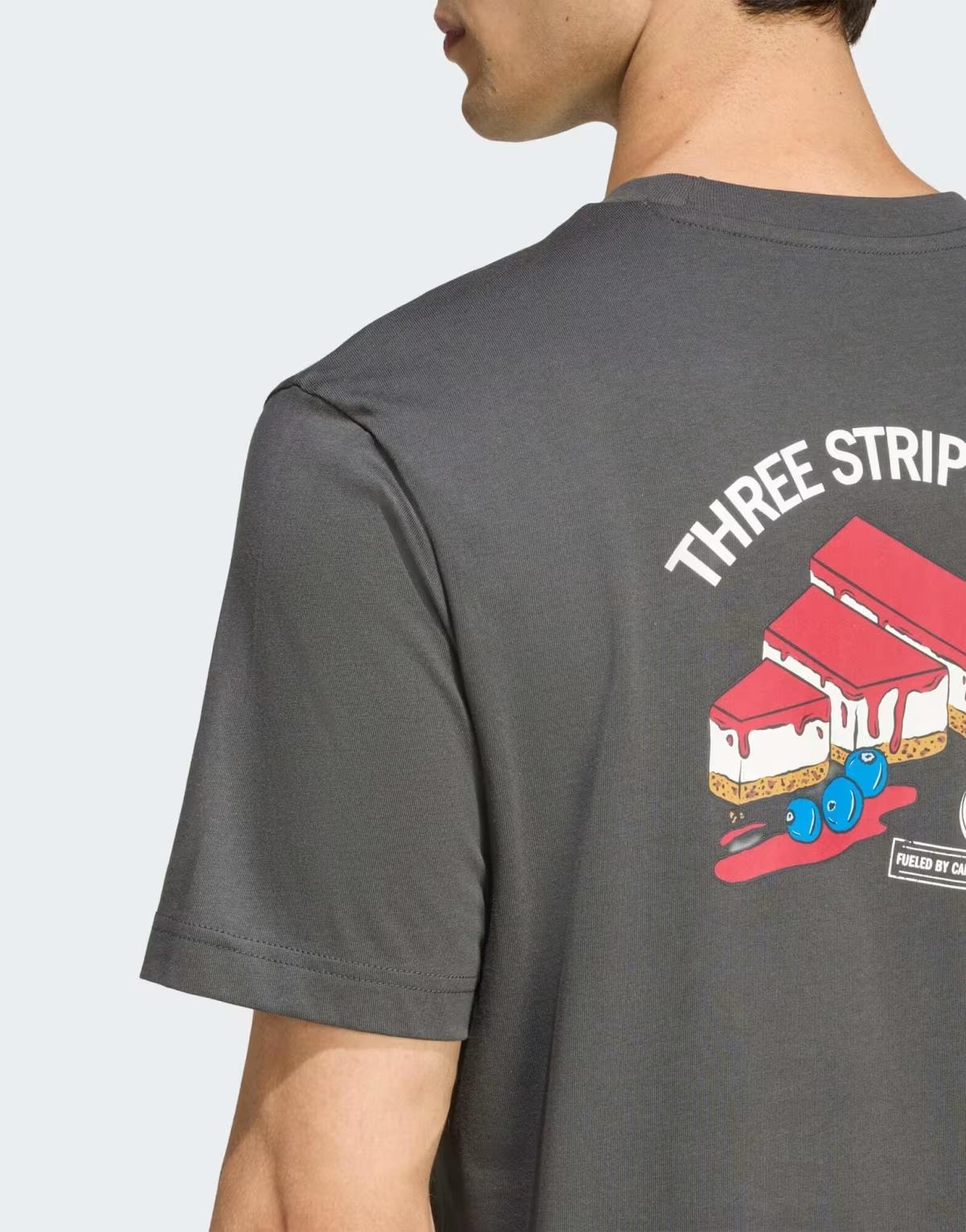 adidas performance Coffee cafe cheesecake graphic t-shirt in grey six