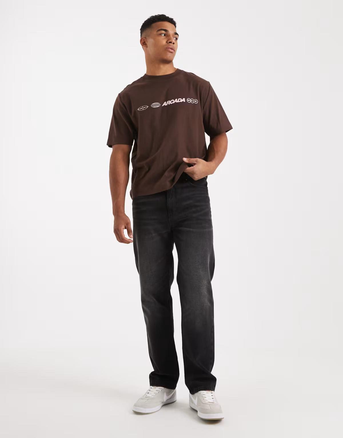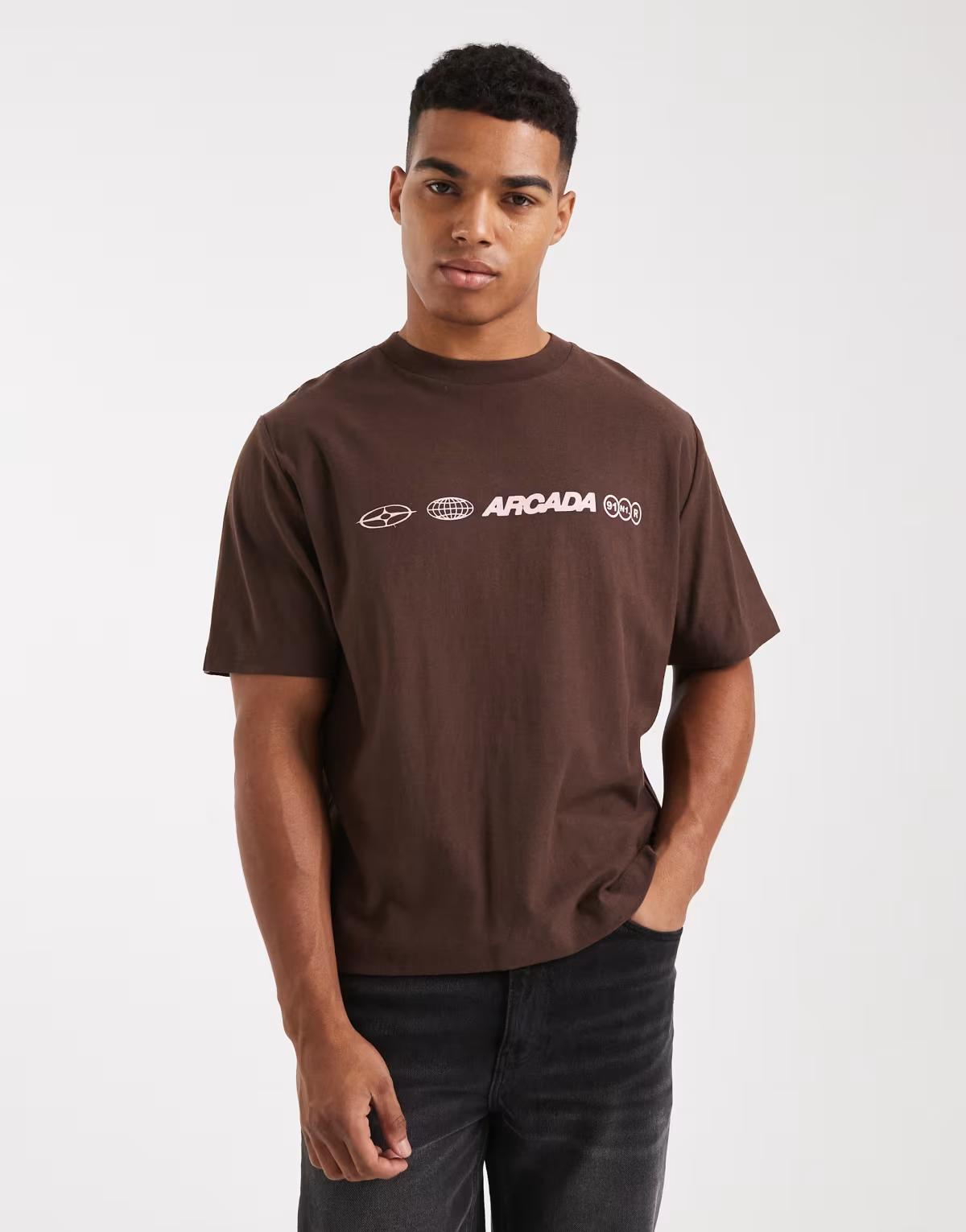 Cotton on cropped fit graphic t-shirt in chocolate brown