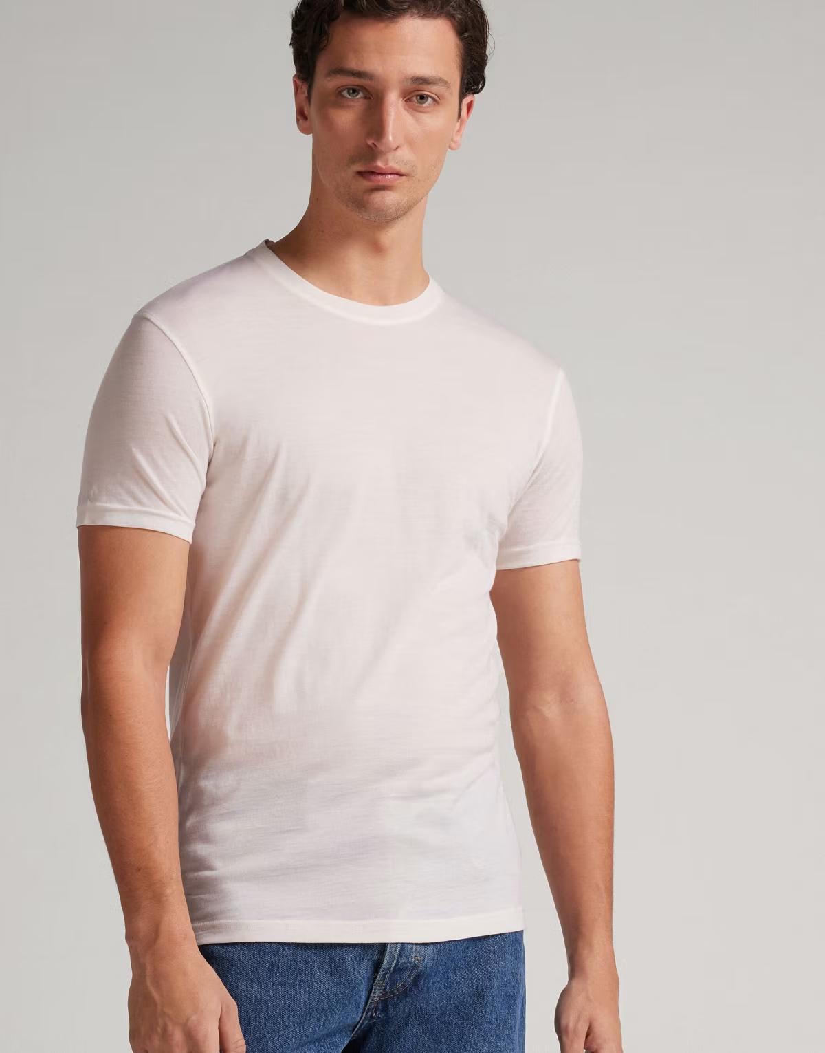Intimissimi T-shirt in stretch merino wool in wool white