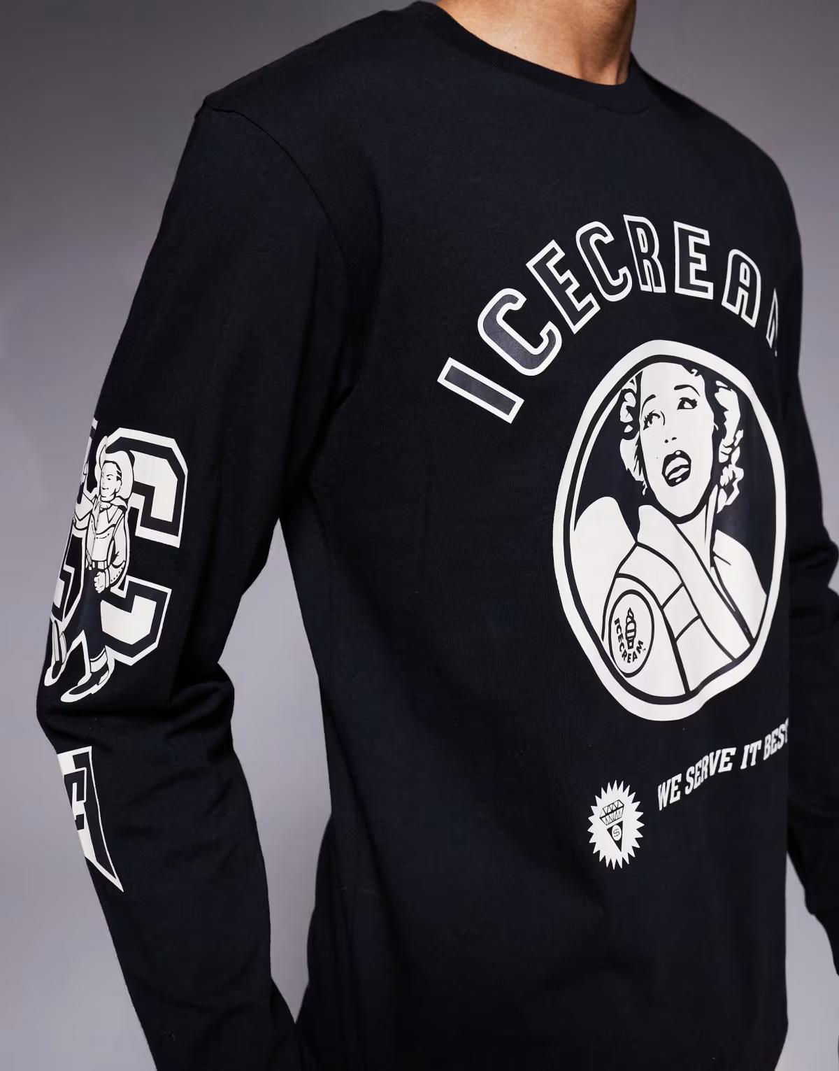 Machine wash according to instructions on care labelMain: 100% Cotton.Get the scoop on ICECREAM – the streetwear brand serving up bold graphics and skate-ready style with a premium edge. Founded by Pharrell Williams and NIGO, the pair use the label to support skaters with serious skills but limited opportunities. Delivering graphic-led designs, discover printed T-shirts, sweatshirts, varsity-style jackets and skate-inspired trousers influenced by fashion, music, and art. Scroll our ICECREAM at ASOS edit and level up your everyday rotation.