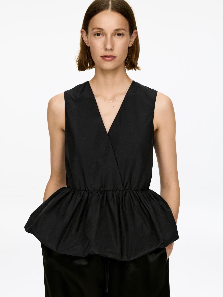 Sleeveless top in crisp taffeta, designed with a wrap front and a peplum hem.ARKET/Women's clothes/Women's shirts and blouses/Women's blouses