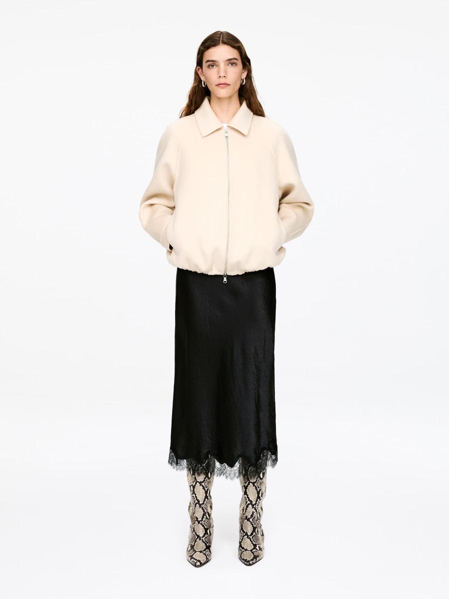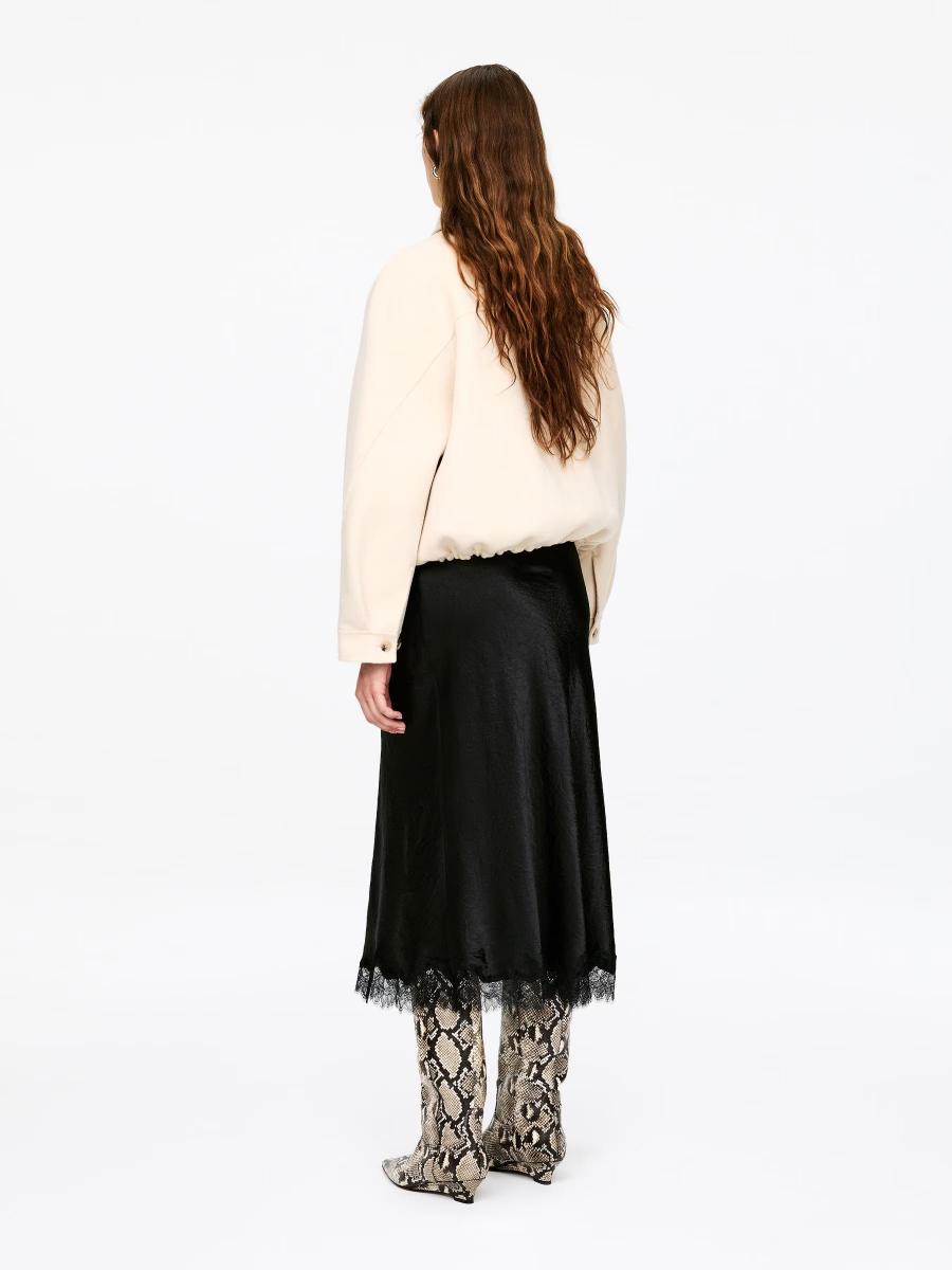 Skirt crafted from satin woven from cellulose fibres, finished with a lace trim at the hem. Regular fit.ARKET/Women's clothes/Women's skirts